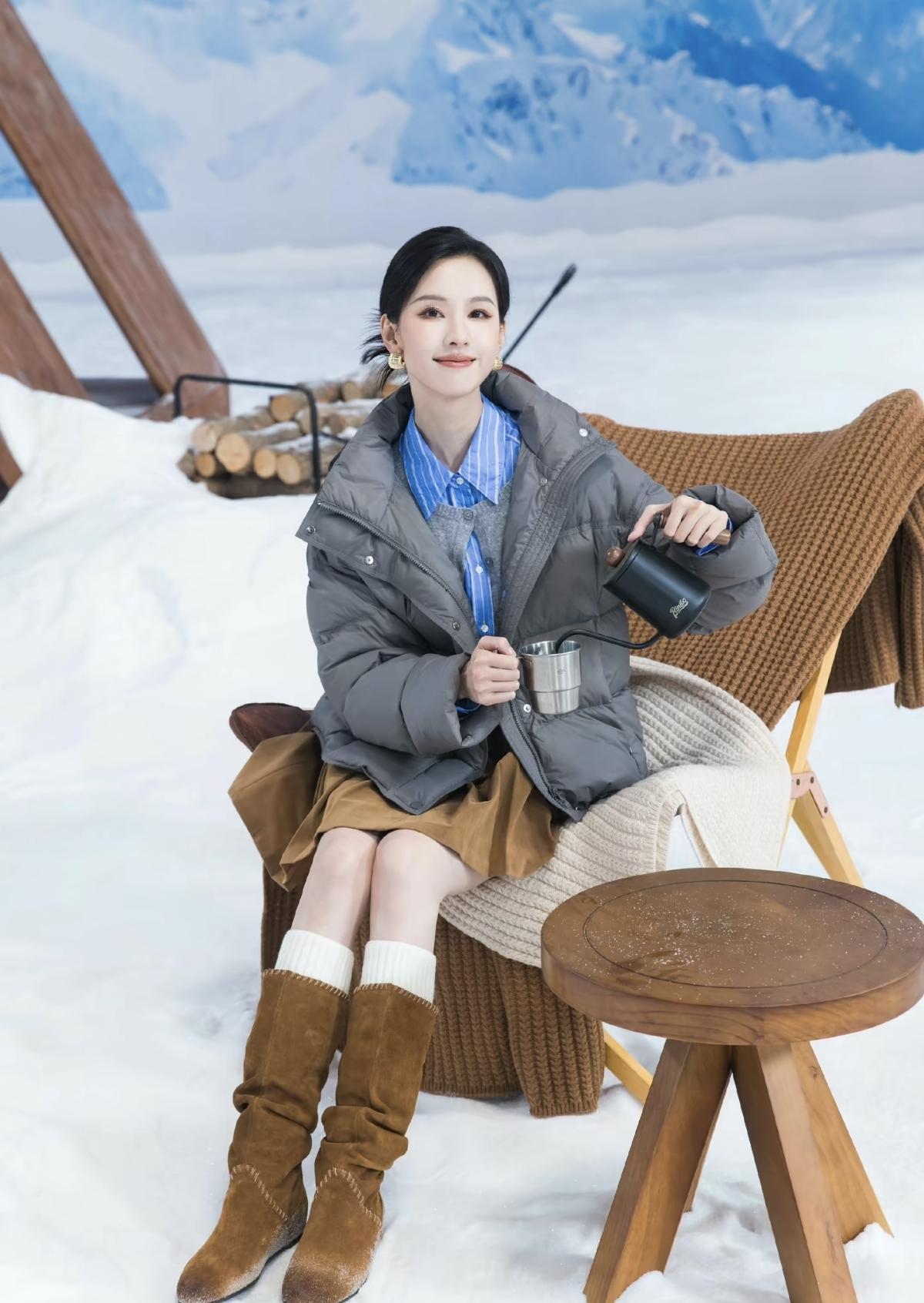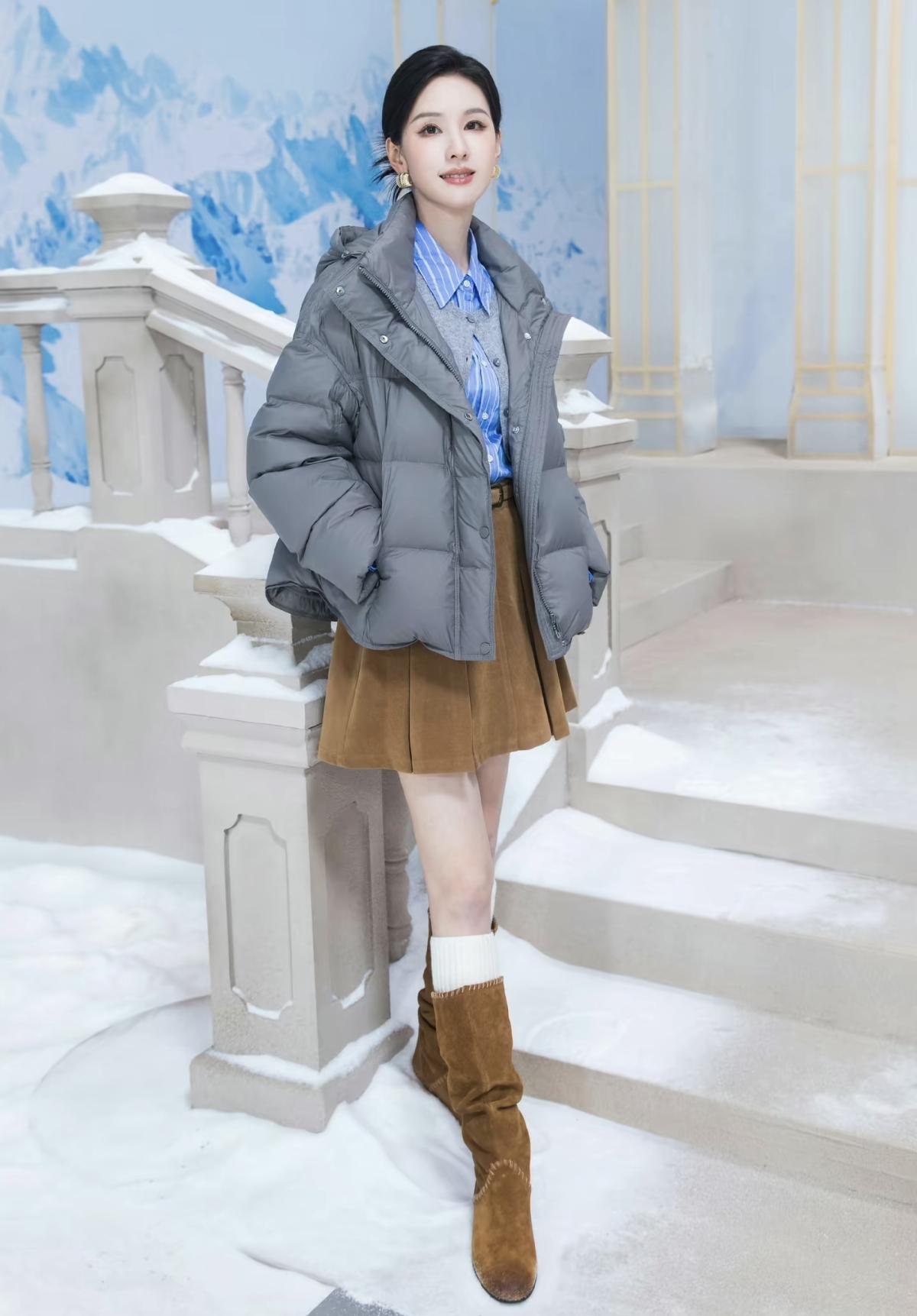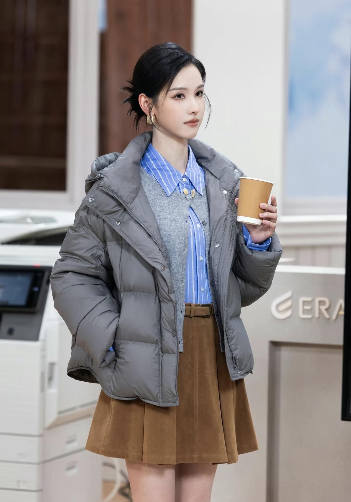 灰调羽绒服+蓝白条纹,陈都灵把冬日通勤装穿出了高级感。简约不简单,保暖又好看[比心]娱乐明星