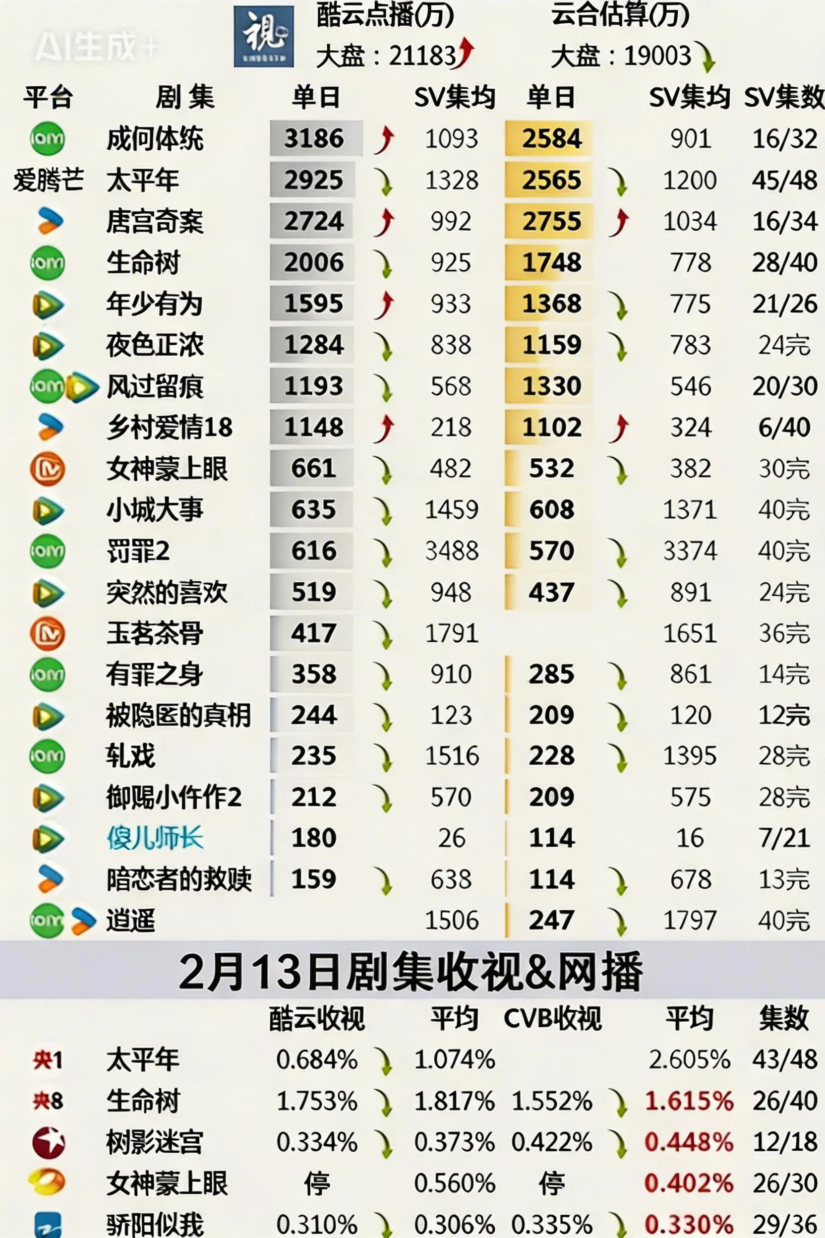成何体统明后天今日登顶,太平年和唐宫奇案紧跟其上,生命树也不示弱,