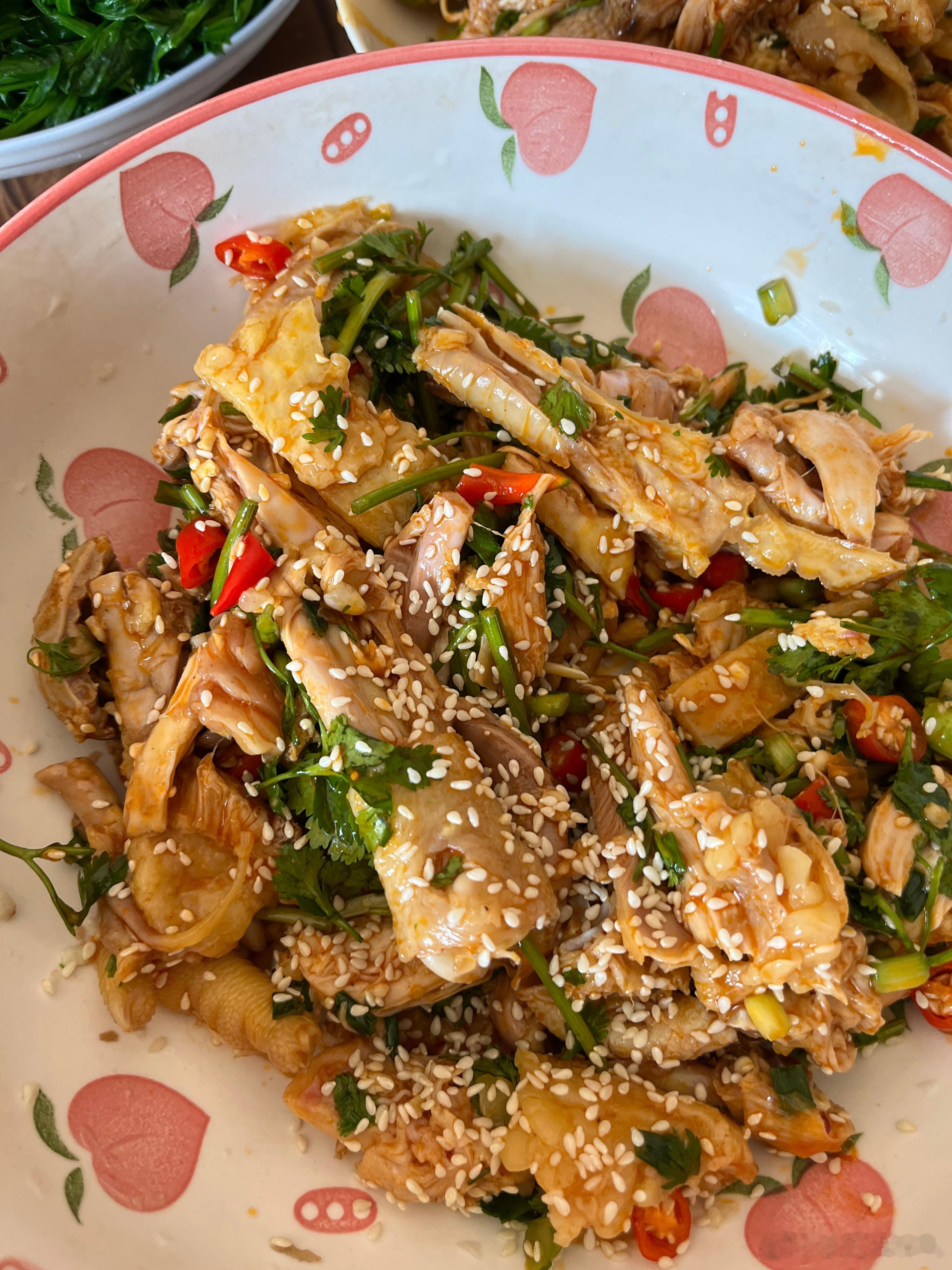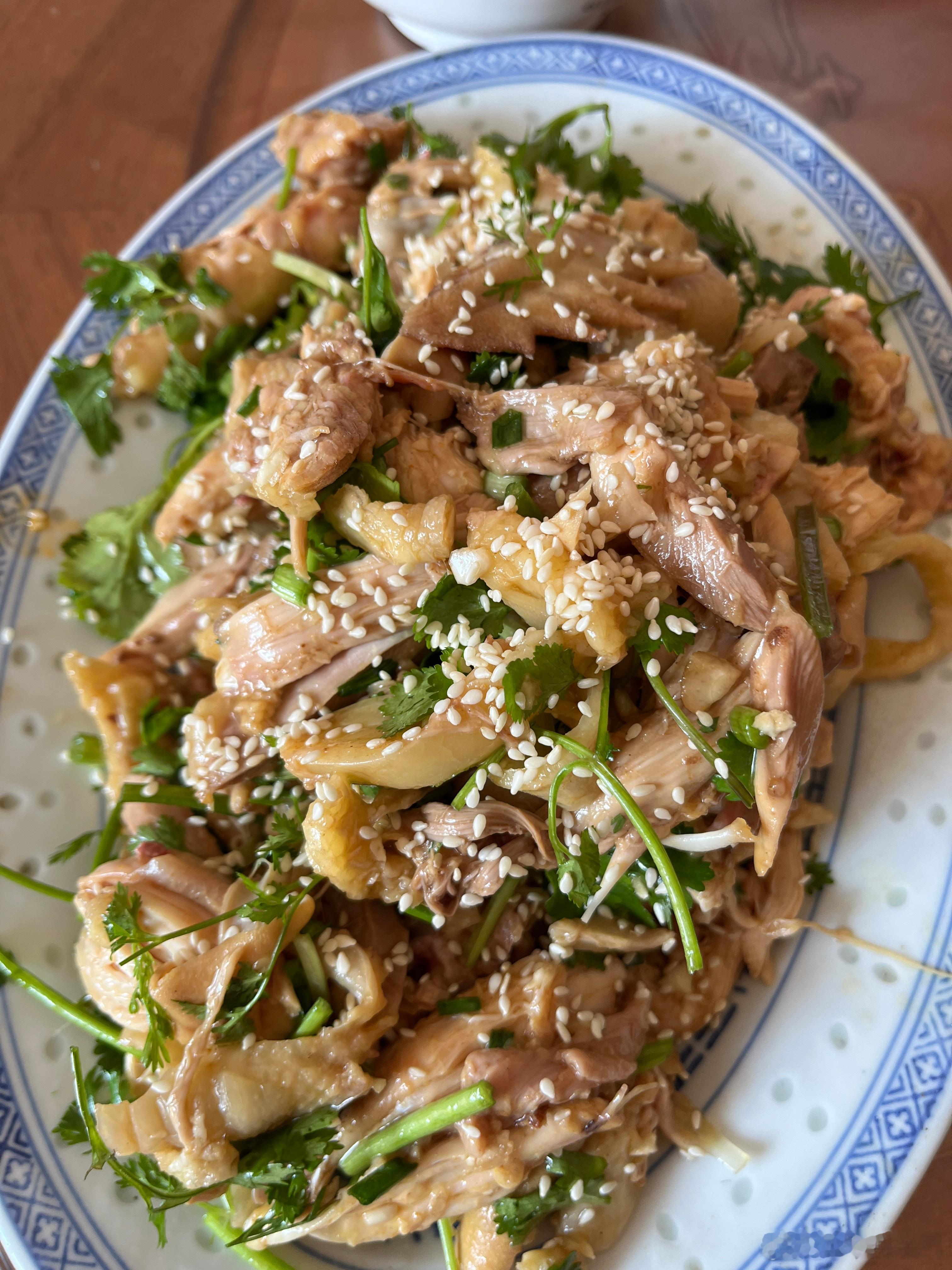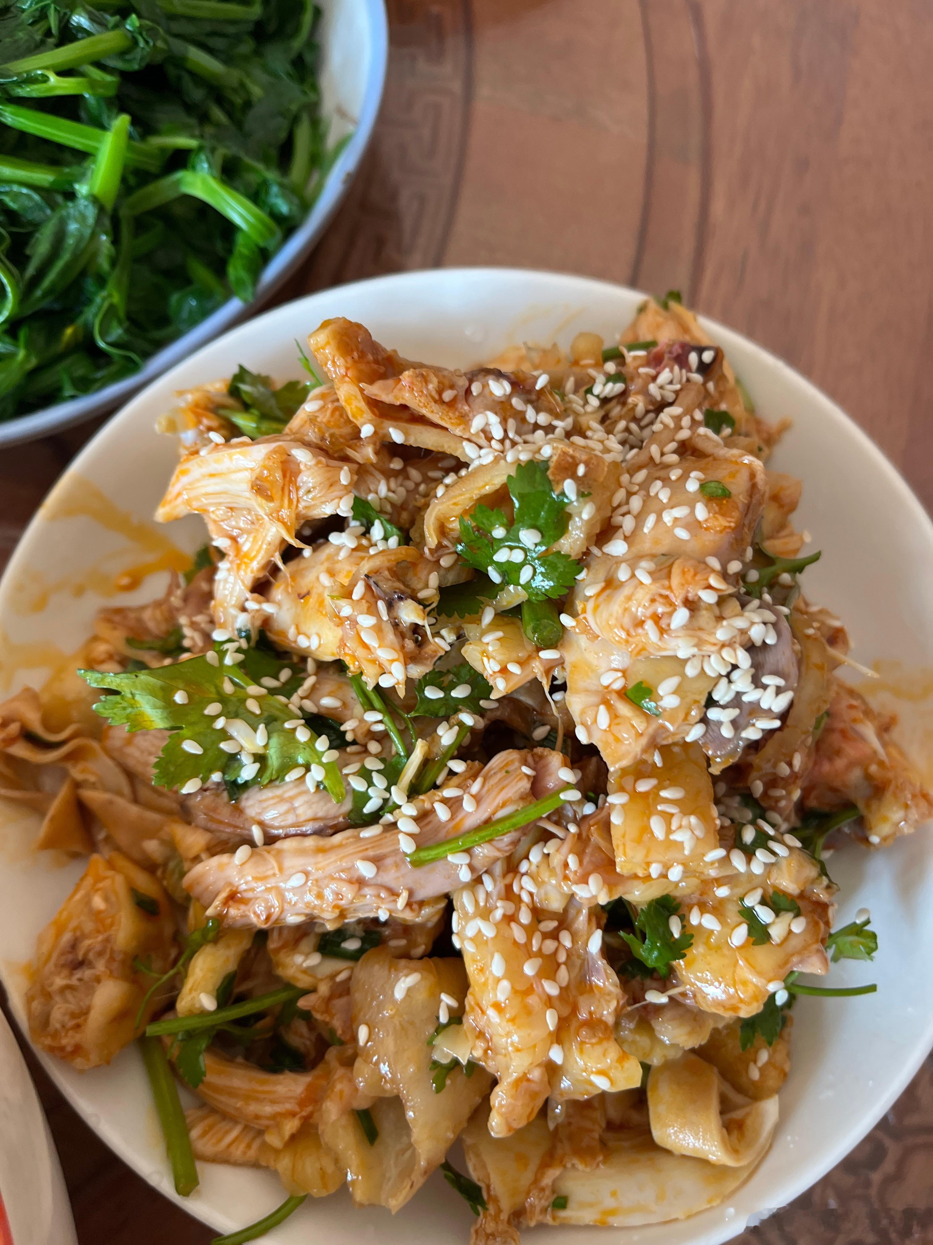 图二是手撕鸡,一个辣的一个不辣的,一个鸡可以做4盘肉,好大一只鸡。