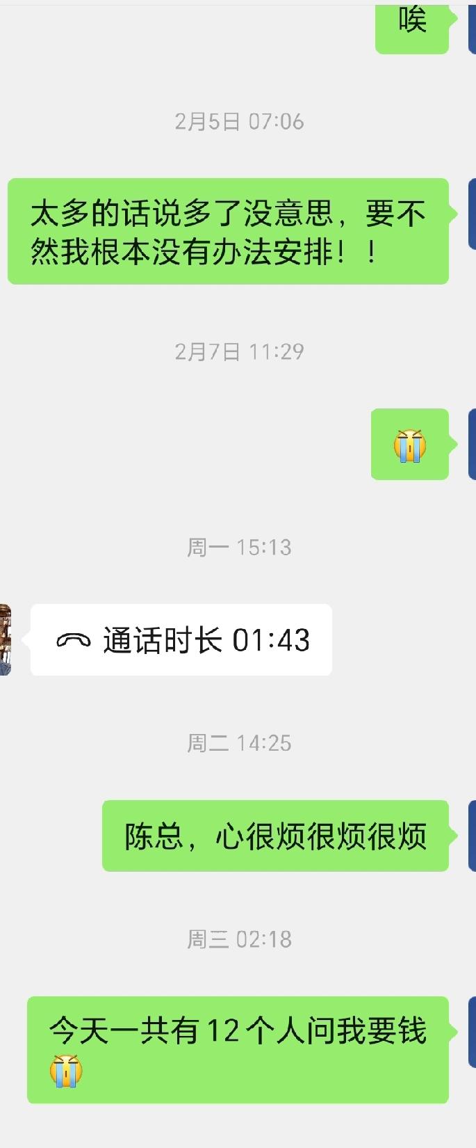 这个春节只能让手机技术性欠费停机,一个人“卡”我,我也被迫去“卡”十几个人。 半个月之前,要钱的电话就已经开始打爆了我的手机。当然,我也打爆别人的手机。 从2025年5月份就就一定!一定给我50w,让我解决外债。结果过了一个月又一个月,这回又前年前一周给,结果又到今晚上才知道结果。这种情况看来是没有希望了。 这年头,追债一定要看到钱进账那一秒钟,才能信以为真。 没办法了,话费都交不起了。要不然都不懂怎么回复问我要钱的人了。 这年头,教子教孙!千万不要借钱出去,一但借出去,你一辈子极有可能只能做“孙子”了。