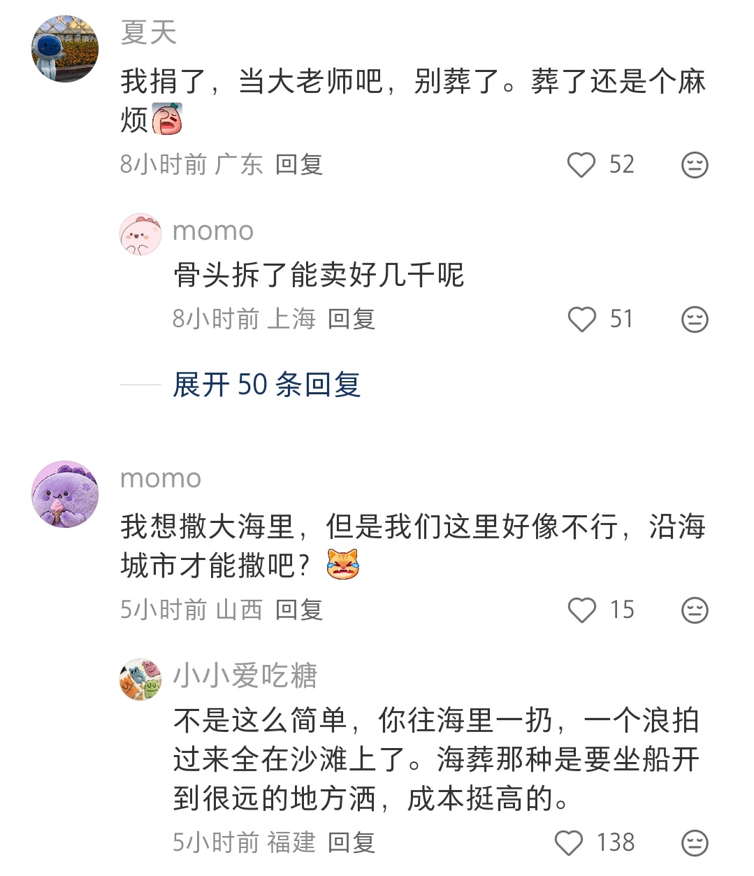 我怕水,我以后想被撒到没有人的草原上喜欢草原,但不想被人踩