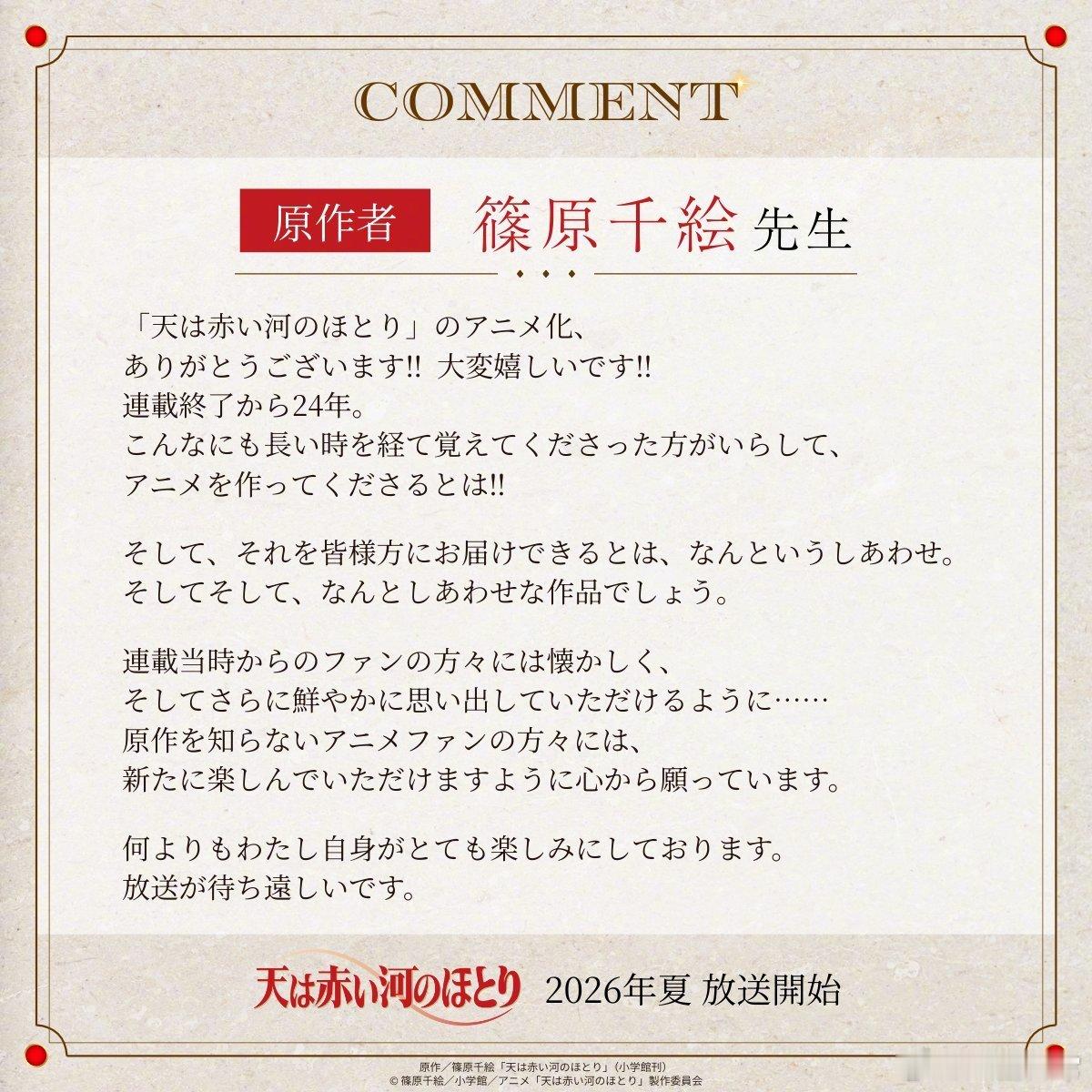 篠原千絵《天是红河岸》动画化,今年夏天开播