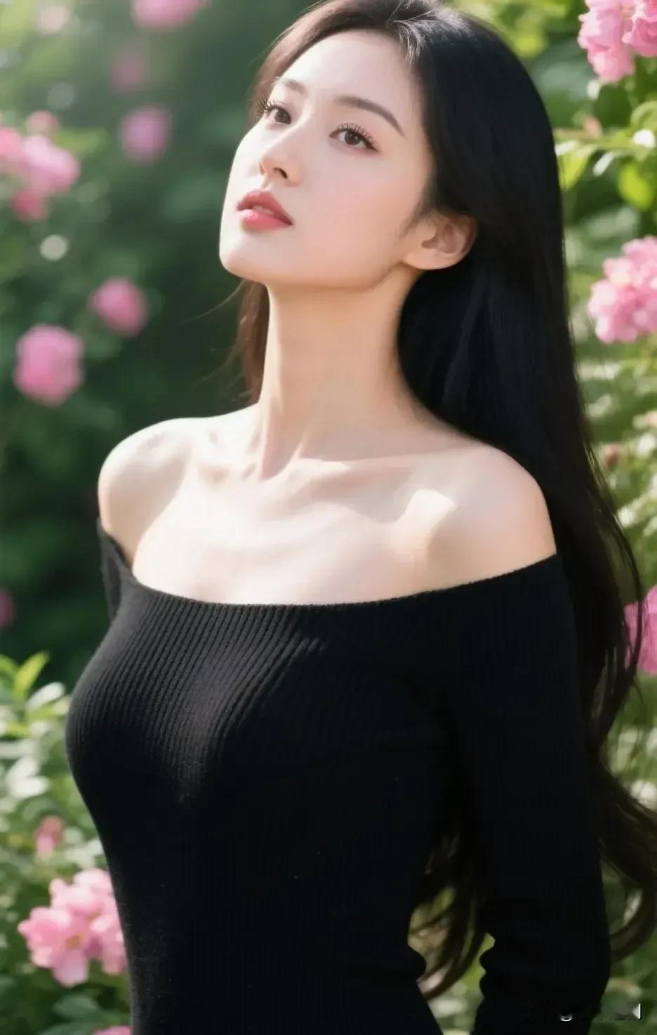黑衫衬粉黛,花影映清颜,温柔自成诗。 淡雅蓝裙照素净之姿素净容颜