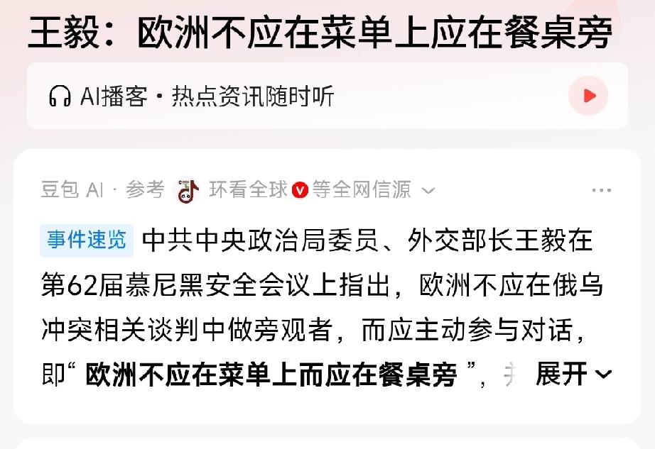 欧洲还是欧洲,没变!! 当中国善意地提出欧洲不应在菜单上应在餐桌旁时,欧洲依然把中国放在了菜单上: 我们可以从慕尼黑安全会议上,欧洲各国对于高市早苗亲手还魂日本军国主义一事,没有一个政客说过一句谴责甚至类似于谴责的话: 这说明欧洲在中日立场上存在严重的不确定性,在亚太,在中国台湾主权问题上存在严重的不确定性!