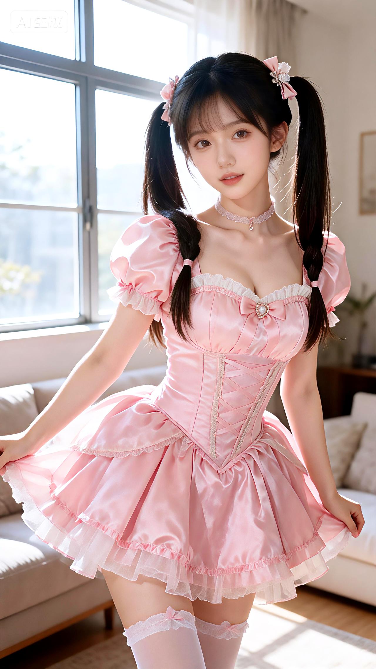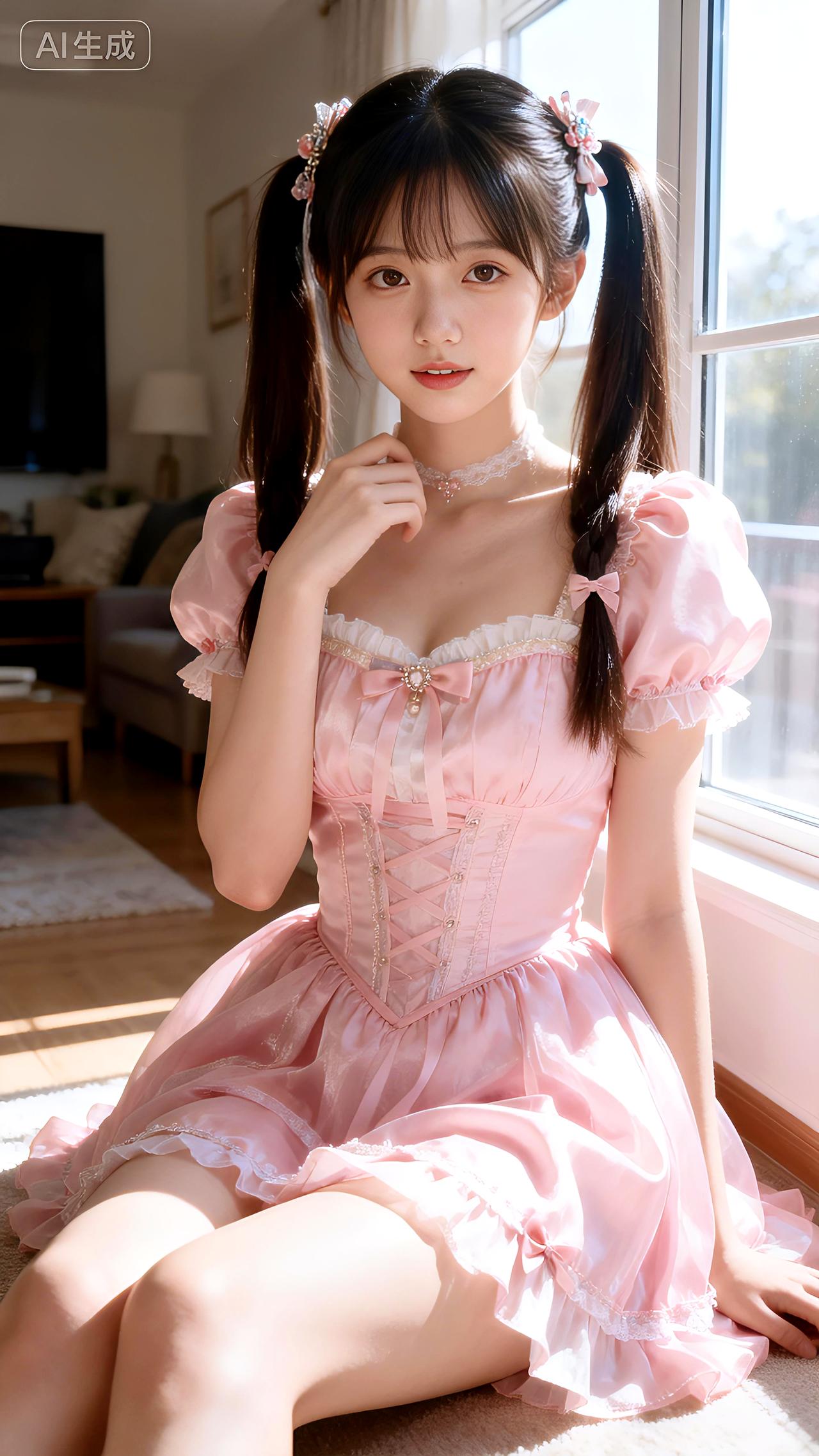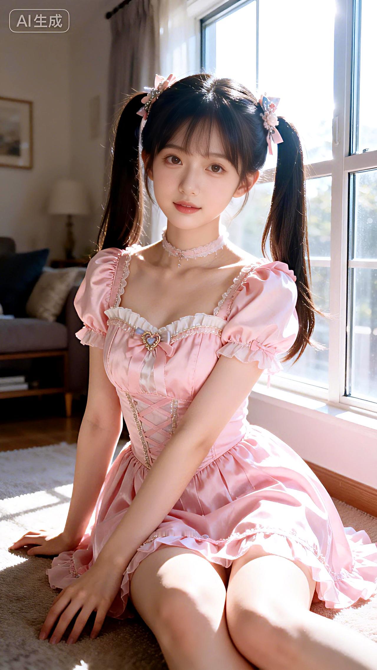 天南地北大拜年午后阳光洒落客厅,窗前少女身着粉色公主裙,双马尾轻盈,甜美如画。豆包 壁纸 写真