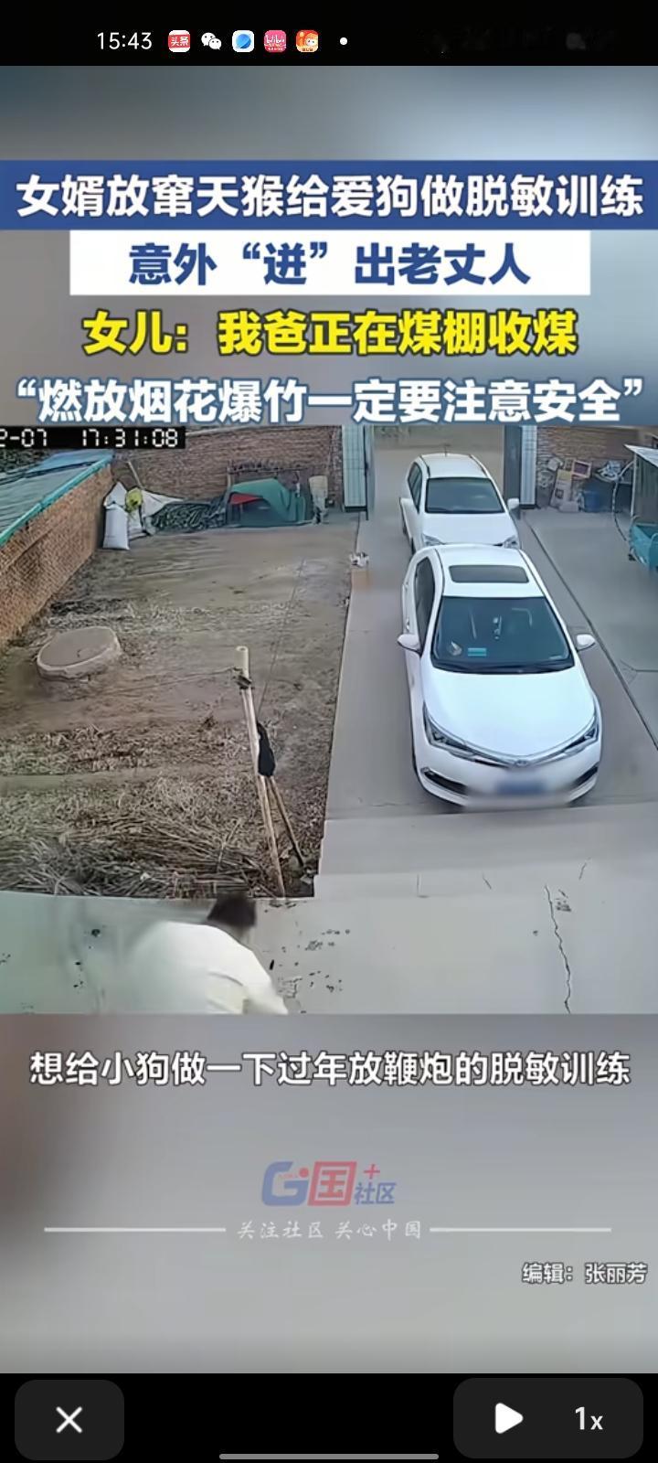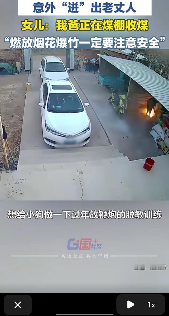 2月7日,辽宁朝阳。女子发布一段监控视频,丈夫想给小狗做一下过年放鞭炮脱敏训练,没想到窜天猴跑偏了,此时父亲在煤棚收煤,窜天猴飞到煤棚那里boom的一声响,父亲估计被吓了一跳,还好没受伤。