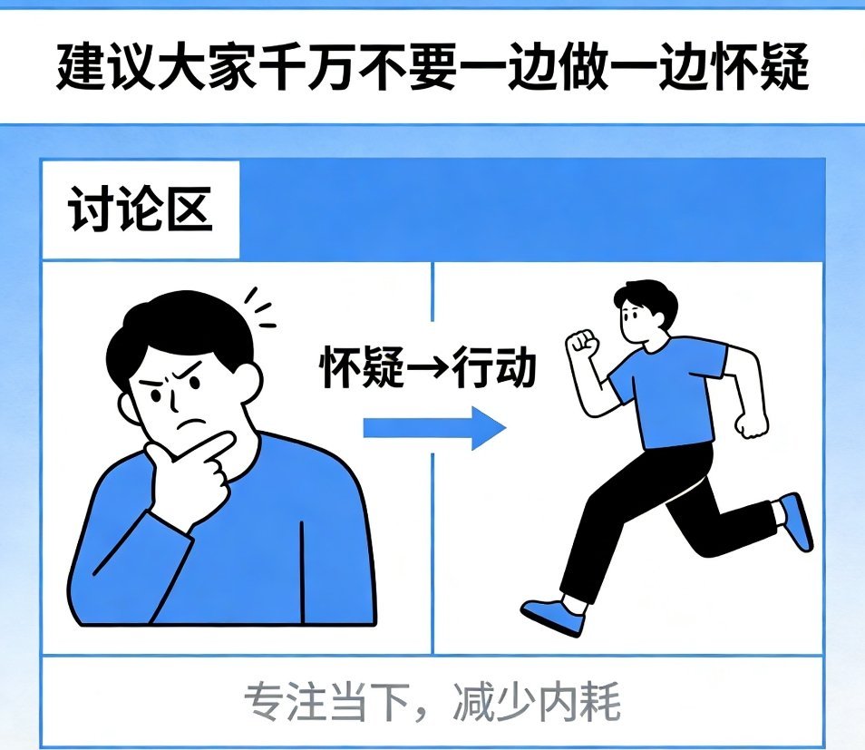 建议大家千万不要一边做一边怀疑想太多会毁了你,先做再说,答案在路上,你们是这样想