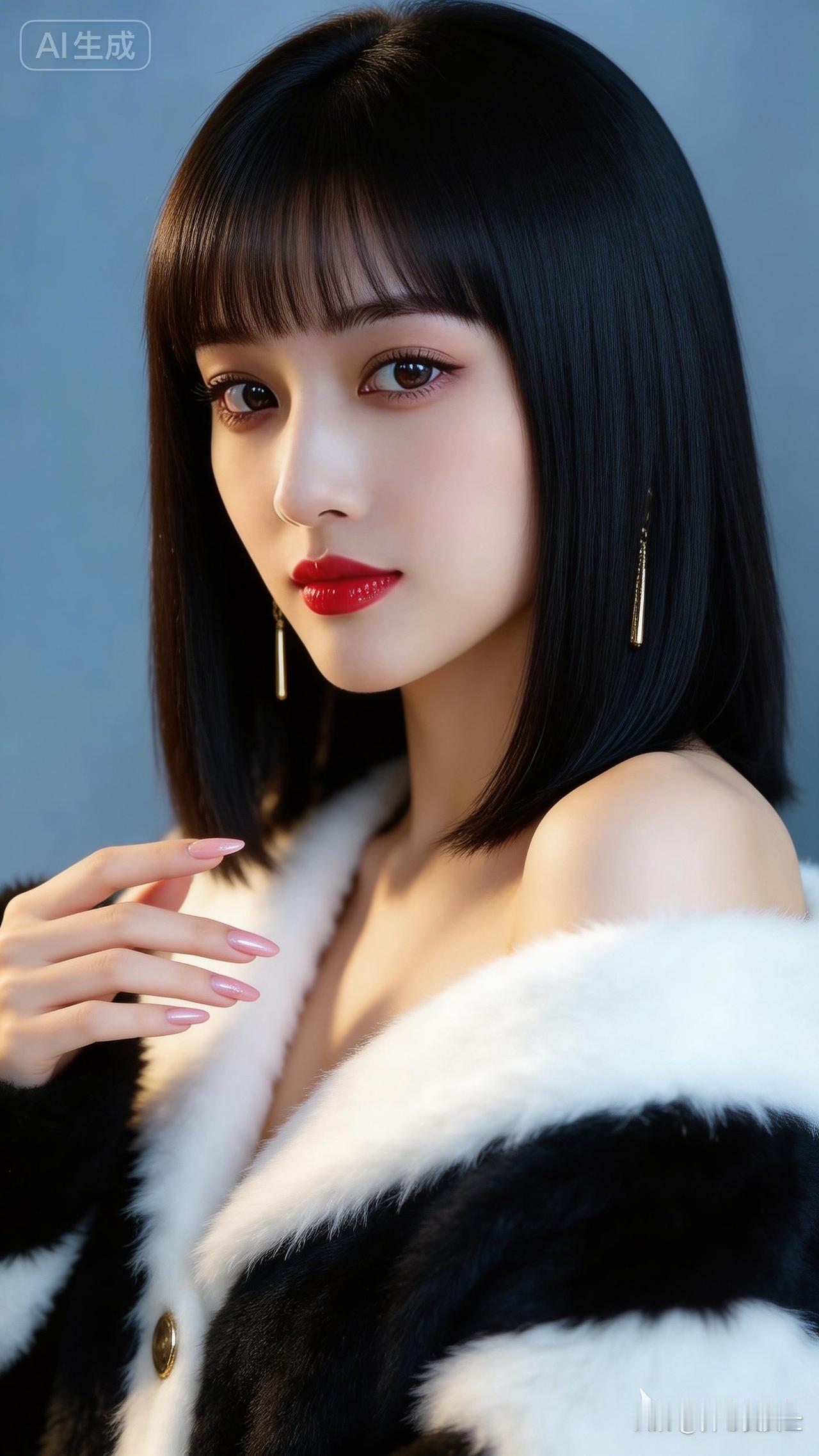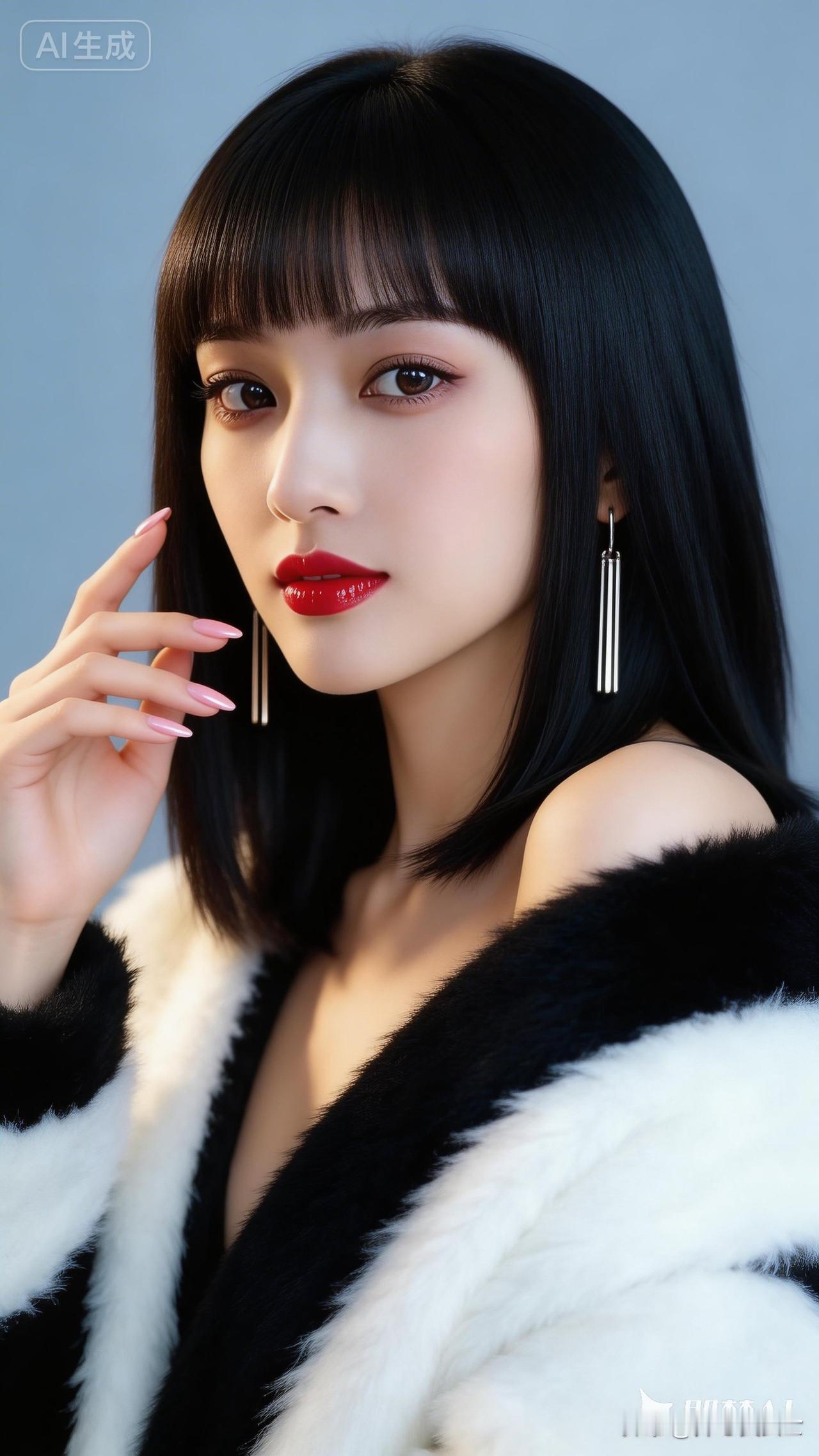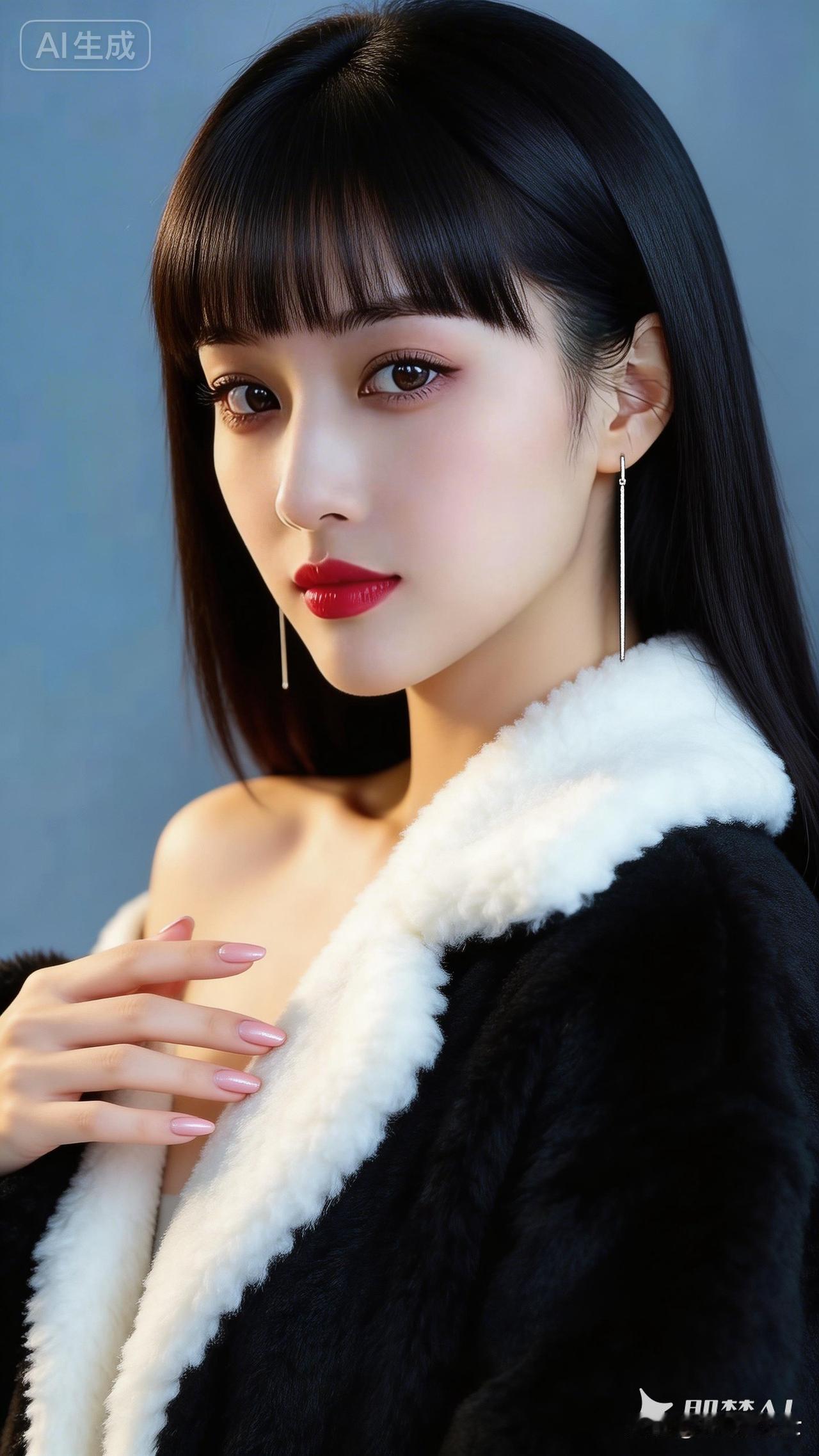 甜美御姐风,黑发红唇,毛绒外套,气质满满!💄👗💎