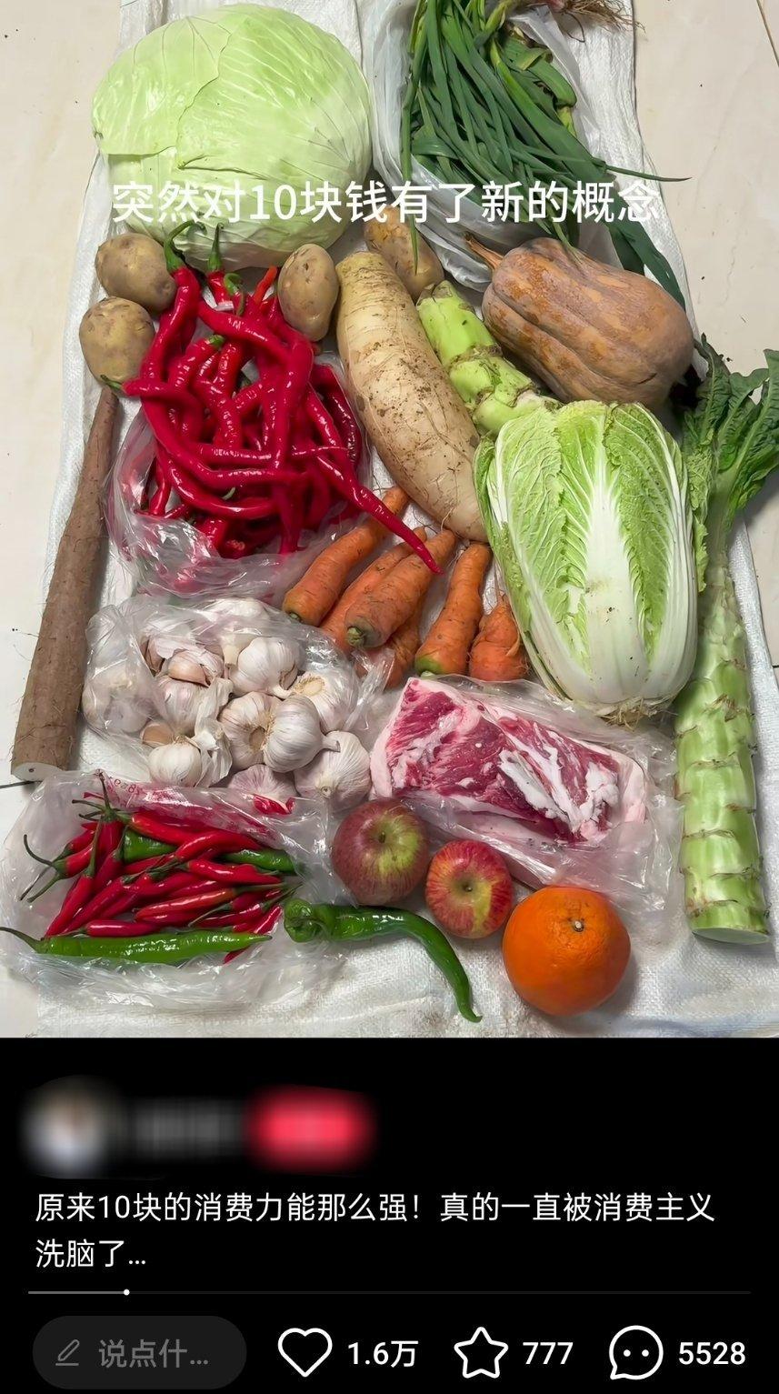 这肉都不止10块了吧这块不止一斤了算约摸2斤都二三十块了莴笋我也经常买大概3元/根 大蒜三四个要了我两块……还10块钱 我看是抹了个0吧