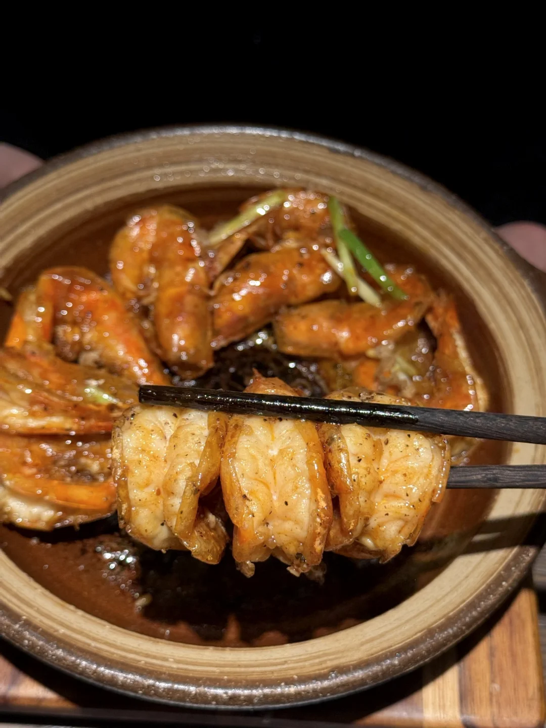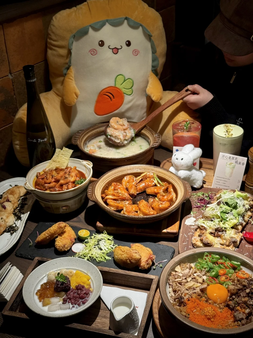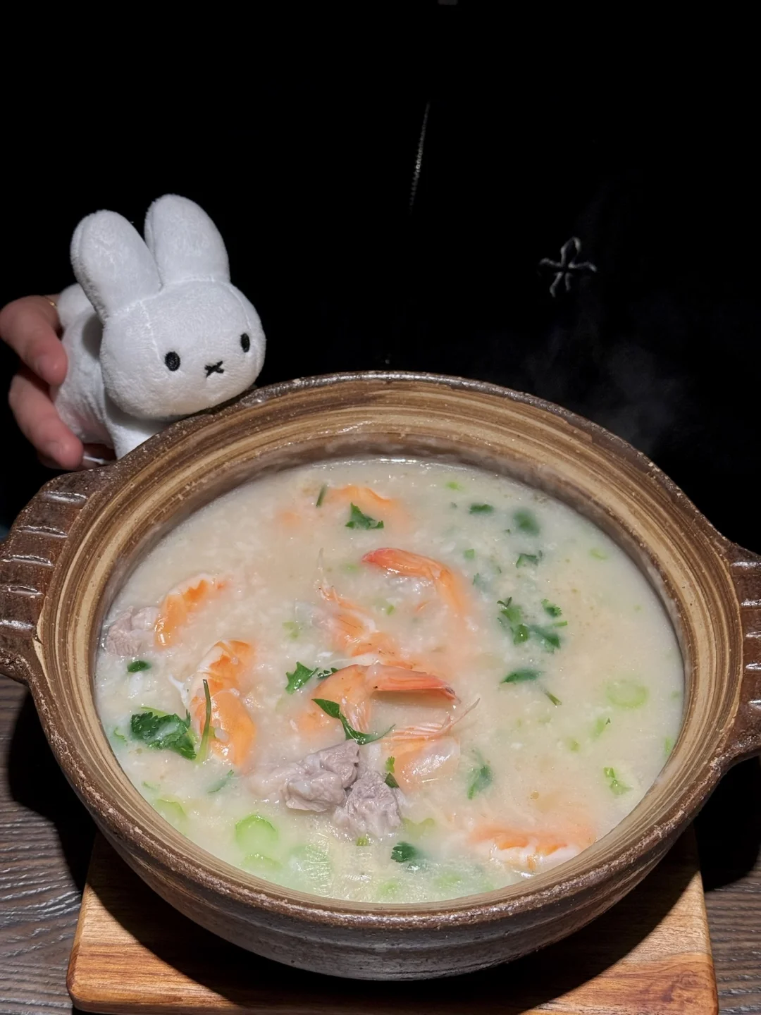 工作日也排队的潮汕漂亮饭… 食材新鲜,口味地道,拍照也很出片!! - 干贝鲜虾排骨粥热气腾腾端上来 鲜甜浓郁,海鲜料好足 排骨肉感十足,暖胃又鲜美😋 - 黄油焗胡椒基围虾,虾肉Q弹,而且个头很大,黄油和胡椒的搭配很让我惊喜 再来份糯叽叽的潮汕木薯牛奶糖水🥛 家庭聚会或和朋友聚餐都很合适~