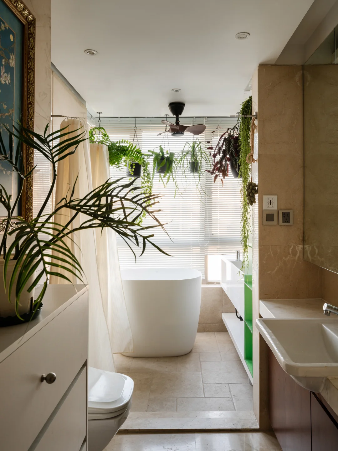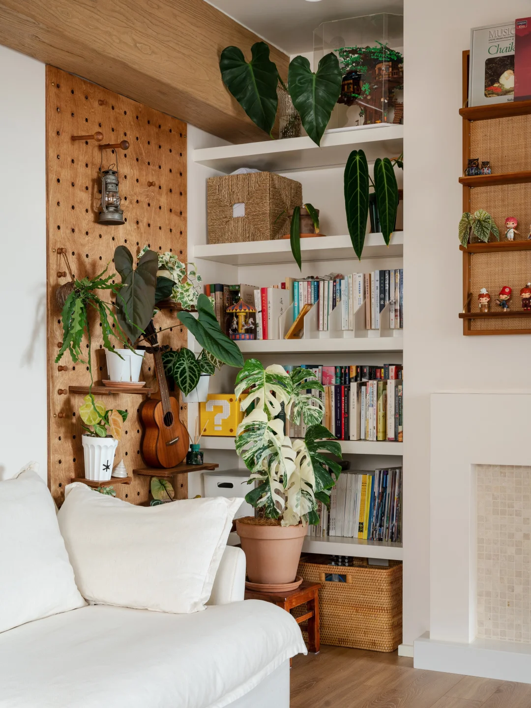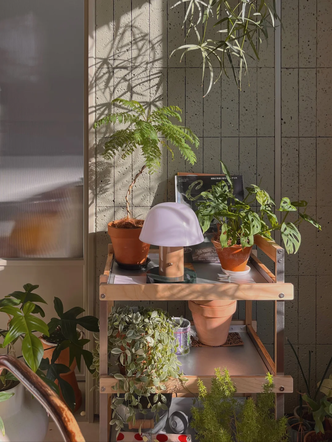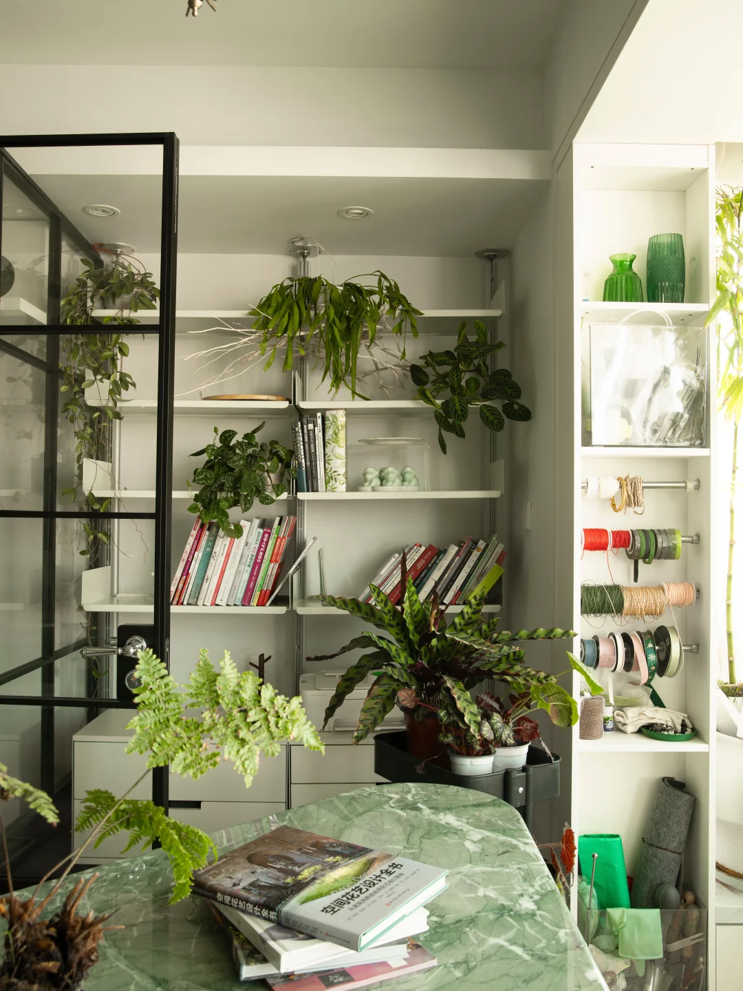 P1-4 是我家,开始只有一盆昆士兰瓶树 后面陆续养了蓝花楹、仙洞龟背竹、金边翡翠吊兰、蔓绿绒 干脆就买了小推车打造了一个植物角,马上变得更有氛围了 P5-7 如果你不想花太多时间在植物上,但又想家里充满生机 养大型绿植会比较合适 P8-12 如果你是绿植爱好者,有好多盆绿植 可以像我业主这样吊起来或挂在墙上,展示出来 也能拥有溢出屏幕的生机感