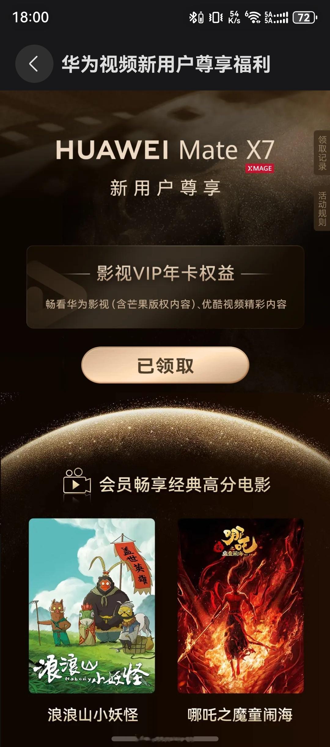 华为 Mate 80 系列和华为 Mate X7 又送了一年华为视频会员,加上激活时送的一年会员,我的华为影视会员已经免费续费到 2028 年底了。