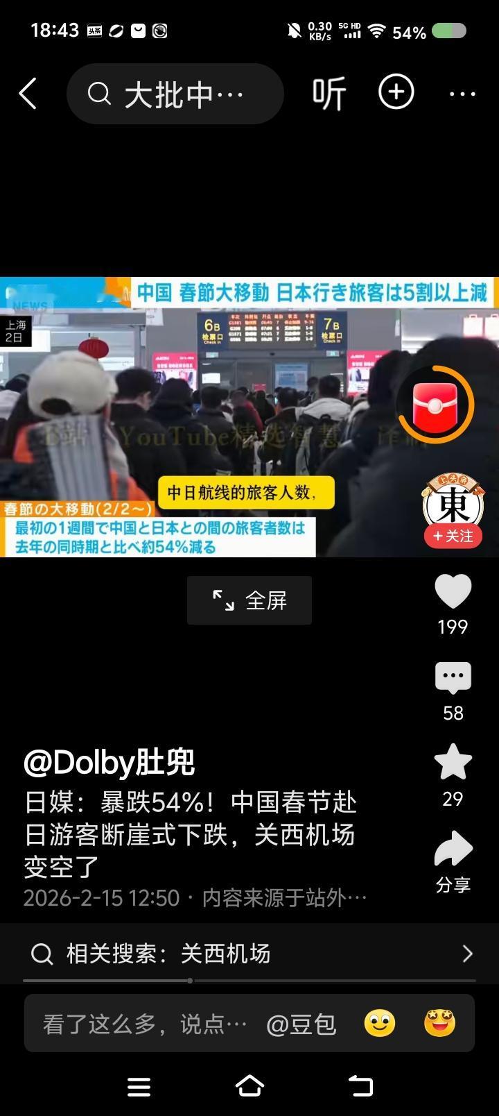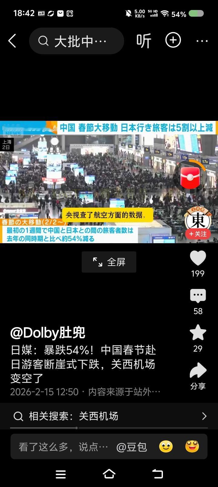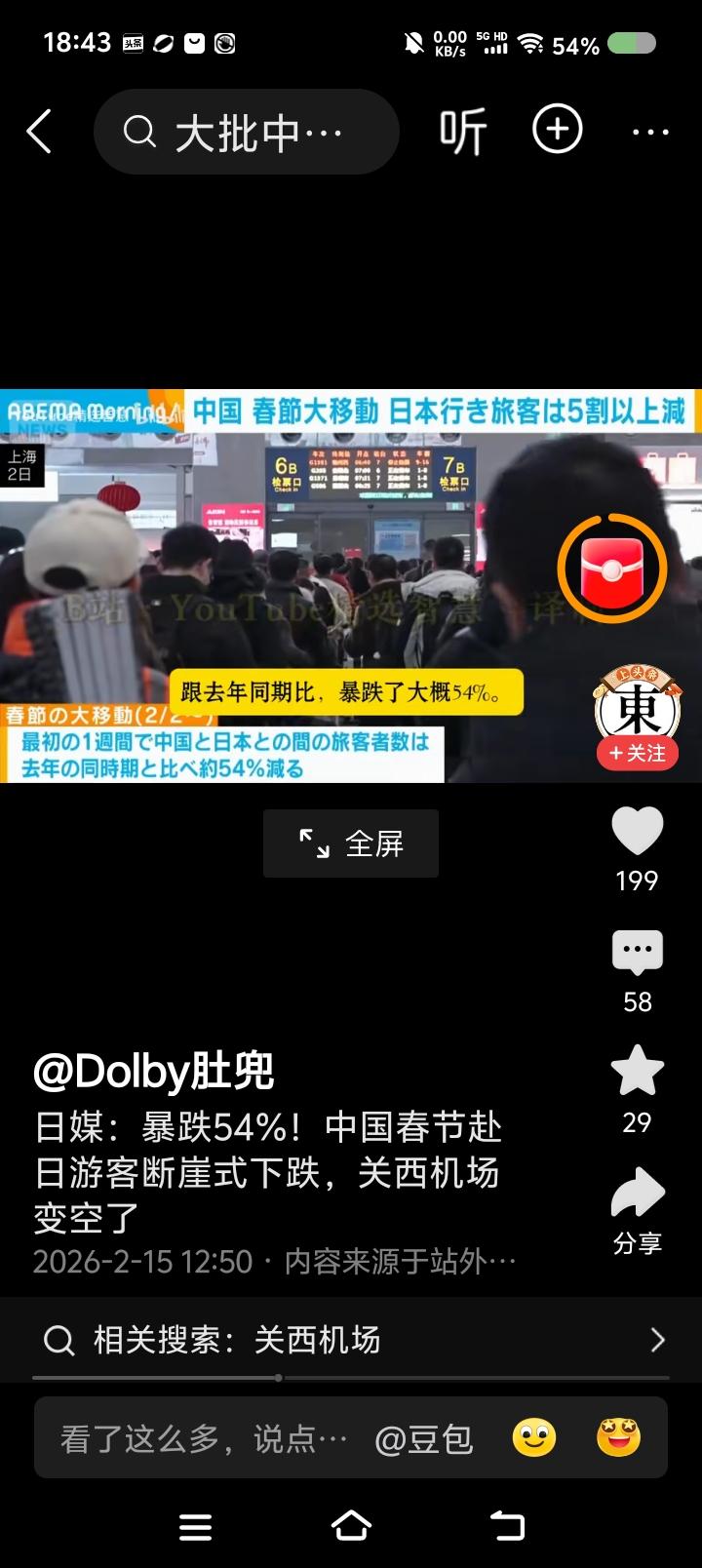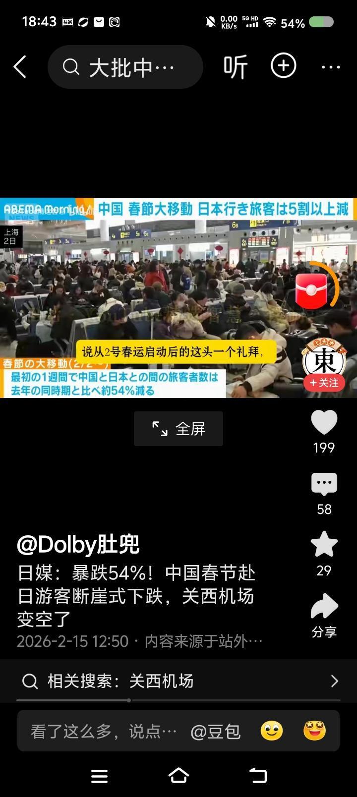 日本媒体,还有脸怪中国政府?—— 网上视频:中国春节将至,日本某媒体在上海某车站报道,大批游客返乡或出游,而赴日旅游人数下滑严重,“(中国)外交部打了招呼,提醒春节期间尽量别去日本。不满高市早苗台海言论,中方喊话,叫大家别去日本……” 点评: 中方没有归零,已是给中日关系面子了。奈何日本发达,不在乎中国游客这点流量,高度支持高市早苗执政,那只有自己庆祝了。 日本媒体,不要卖惨,不要怨天尤人,这叫“自作孽不可活”。