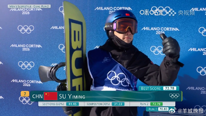#苏翊鸣第二滑72.78分# 米兰-科尔蒂纳#冬奥会#,顺利完成两轮滑行,第二滑72.78分,发挥稳定,节奏在线。#苏翊鸣晋级坡障决赛##国际雪联回应谷爱凌吐槽##单板滑雪男子坡障技巧预赛##张博恒祝冬奥健儿新春快乐#(编辑:杨雨桐;审签:周乐瑞)