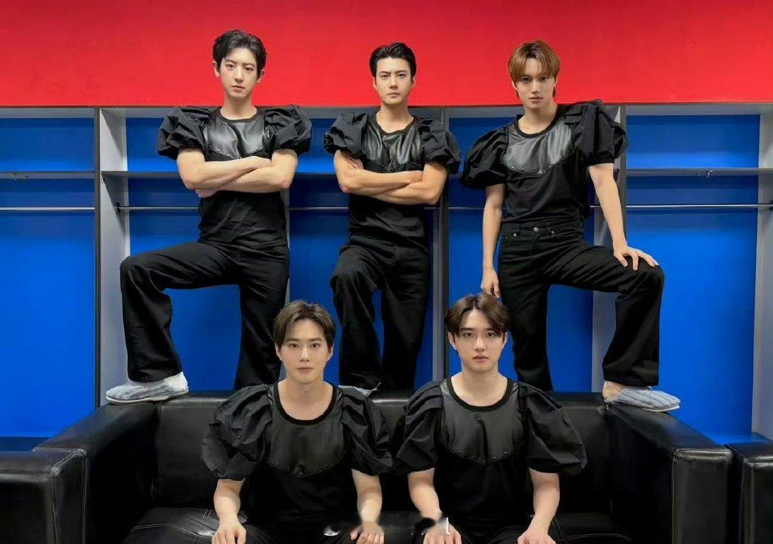我的天啊,EXO这直接给自己弄了一套泡泡袖的妆造,颜色还是全黑的,真的很难说啊,这套服装你咋看呢?
