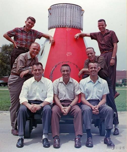 这张照片展示的是水星计划七人组(MercurySeven),即美国国家航空航天