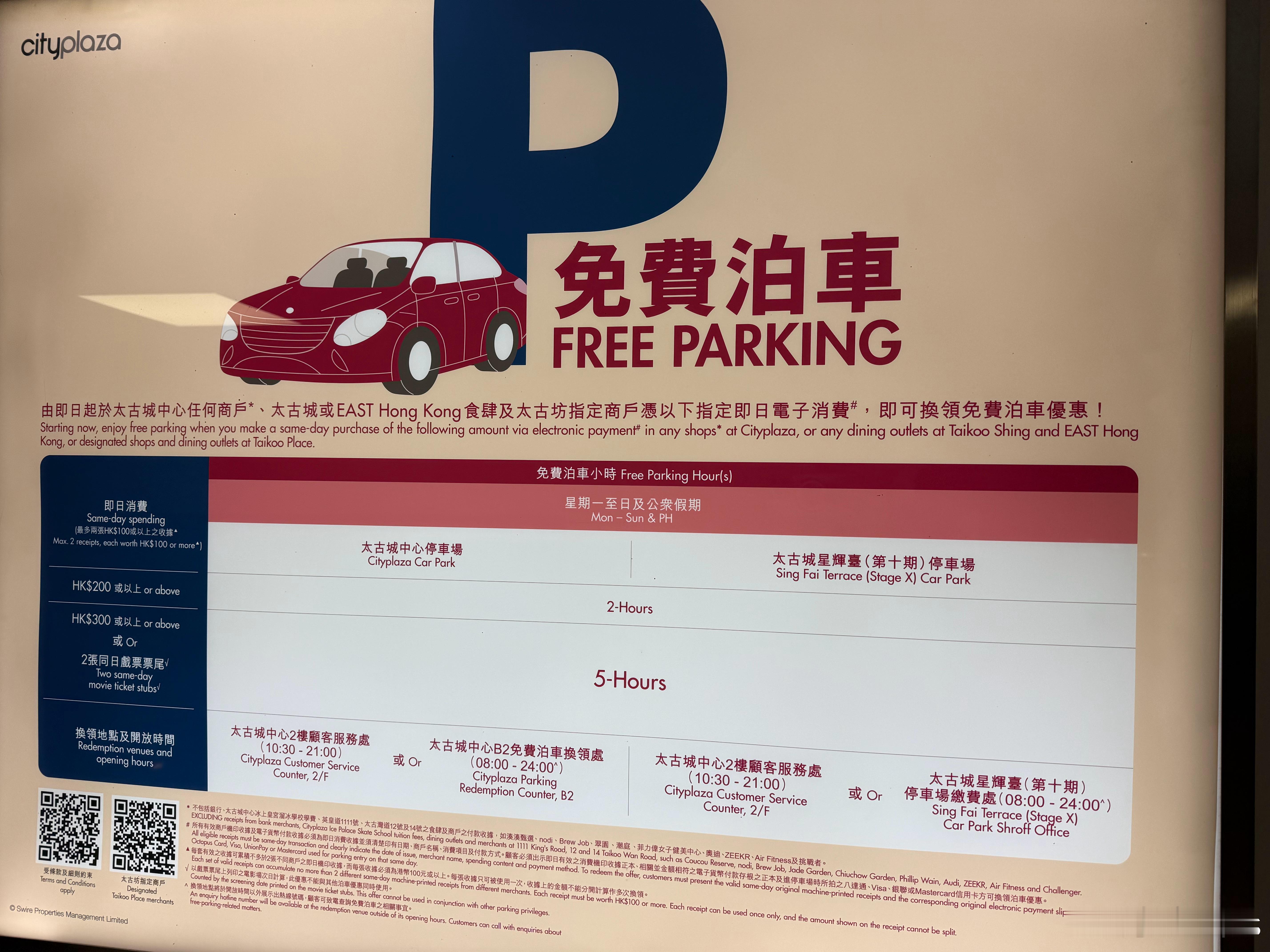 消费300蚊免5个钟,广州都做不了。香港一日暂时没给过停车费!