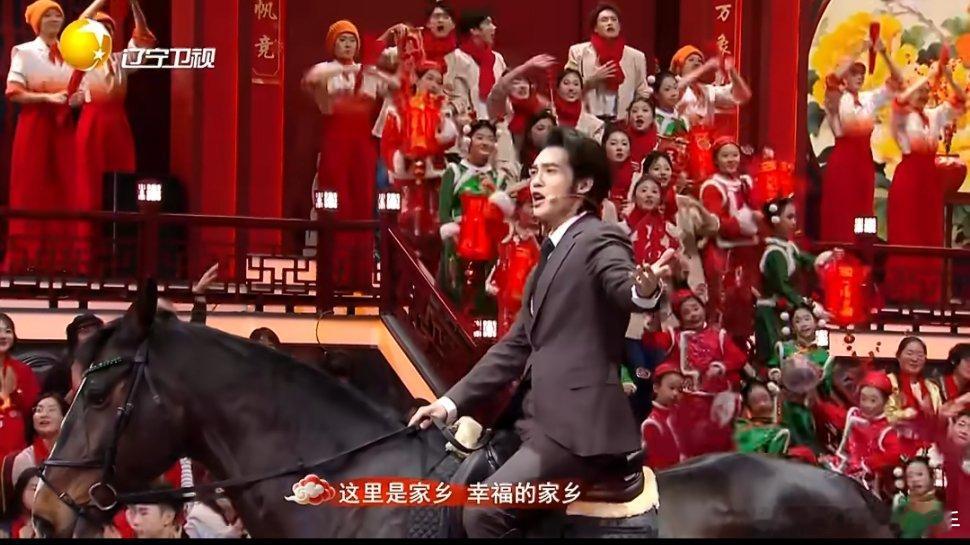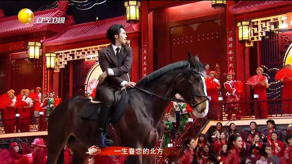 辽宁春晚于适骑马出场西装革履配骏马,于适这出场太有排面了!稳稳驾驭全场,马年开场