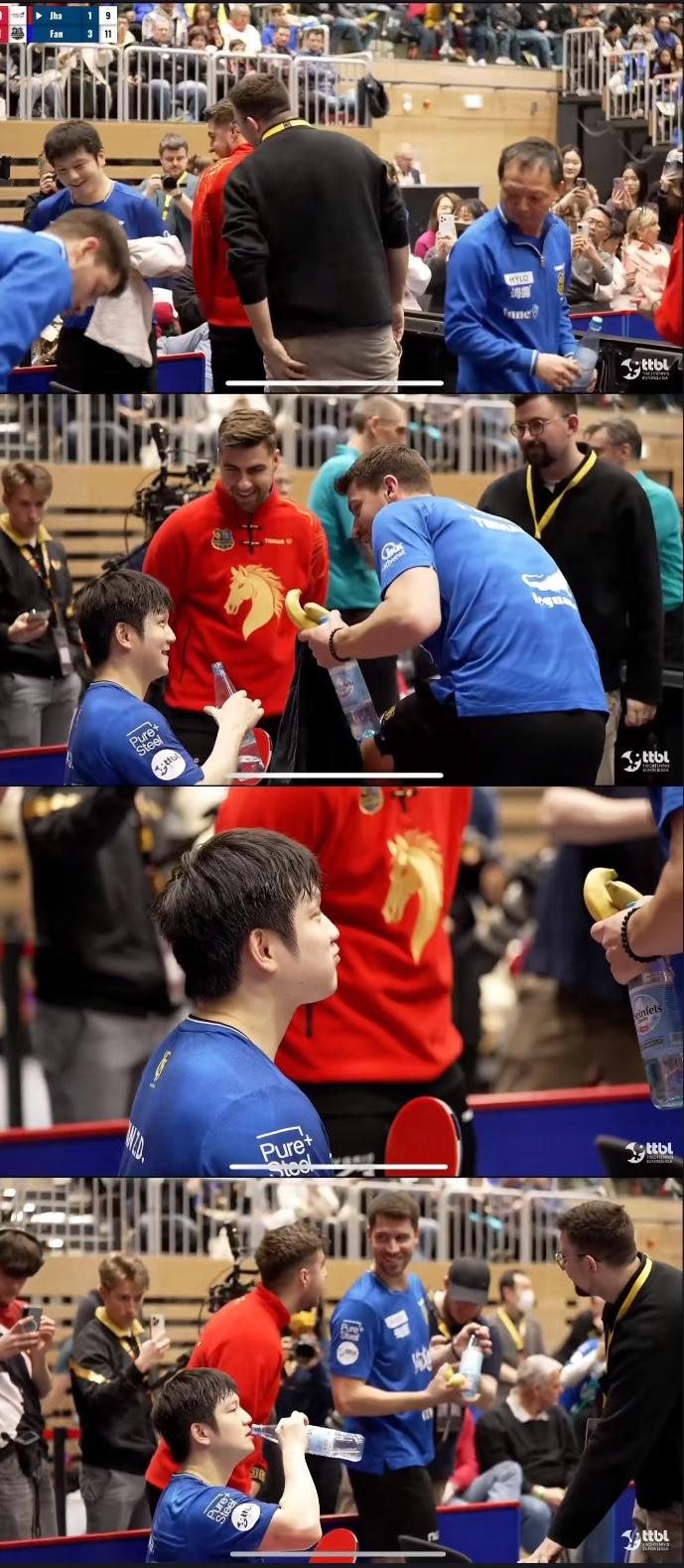 德甲联赛樊振东/迈斯纳将首次出战打男双啦! 2月15日,德甲第十七轮比赛, 萨尔布吕肯客场对阵杜塞尔多夫, 第一盘,樊振东3:1贾哈, 6:11,11:8,11:6,11:9, 第二盘,弗朗西斯卡3:1邱党, 11:8,11:4,3:11,11:6, 第三盘,迈斯纳VS安东卡尔伯格 12:14, 第四盘弗朗西斯卡VS贾哈, 第五盘,樊振东/迈纳斯VS 邱党/卡尔伯格! 希望樊振东打男双, 但迈斯纳即使赢不了, 估计弗朗西斯卡也会赢贾哈, 德甲比赛, 樊振东首次被安排男双…… 德甲赛场今天真的让人感动🥲, 樊振东出场的特定国服, 中场休息时的文艺演出, 都是为东哥庆祝新年快乐, 让人觉得非常暖心!