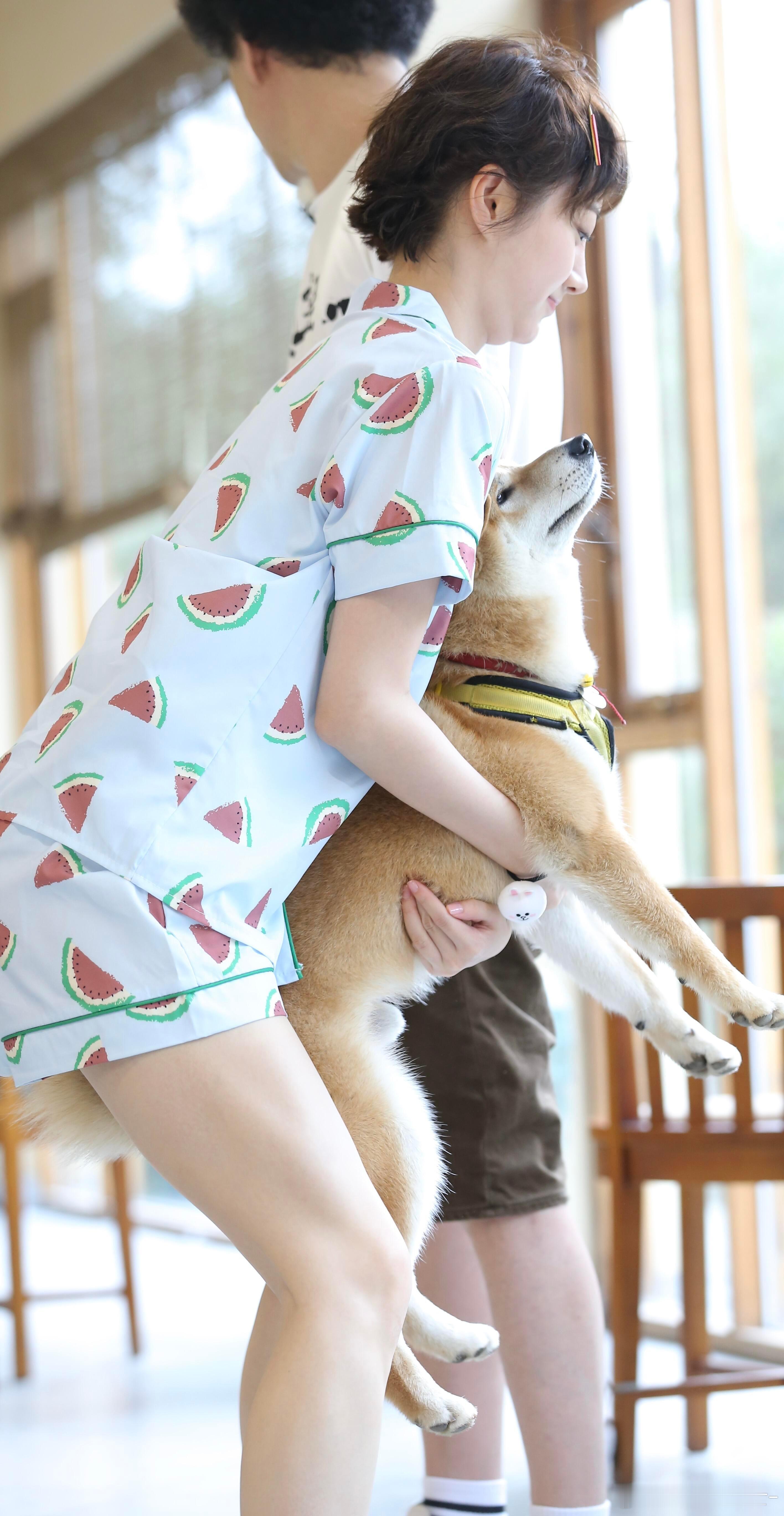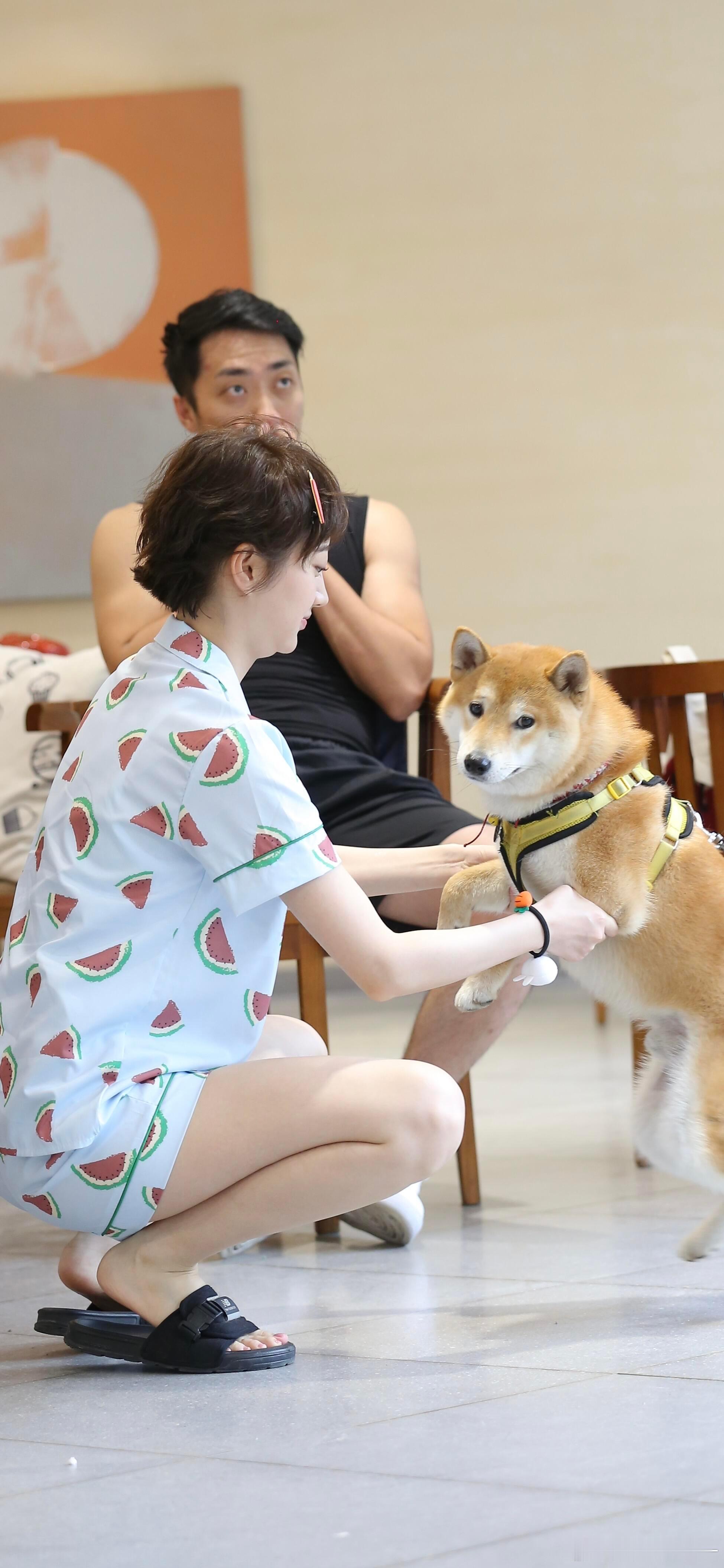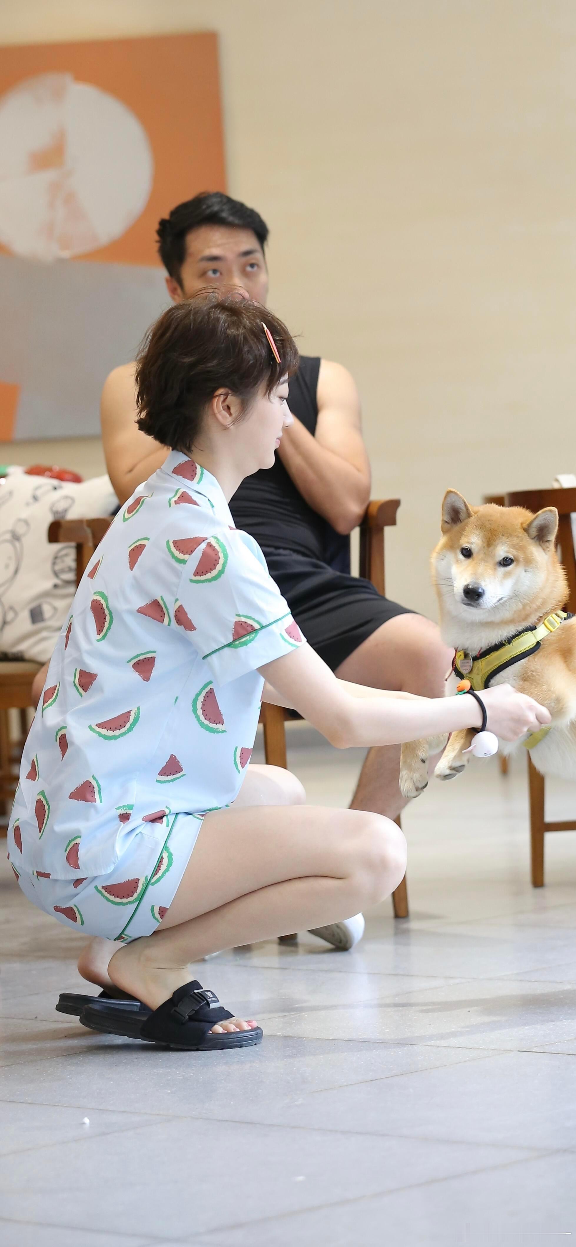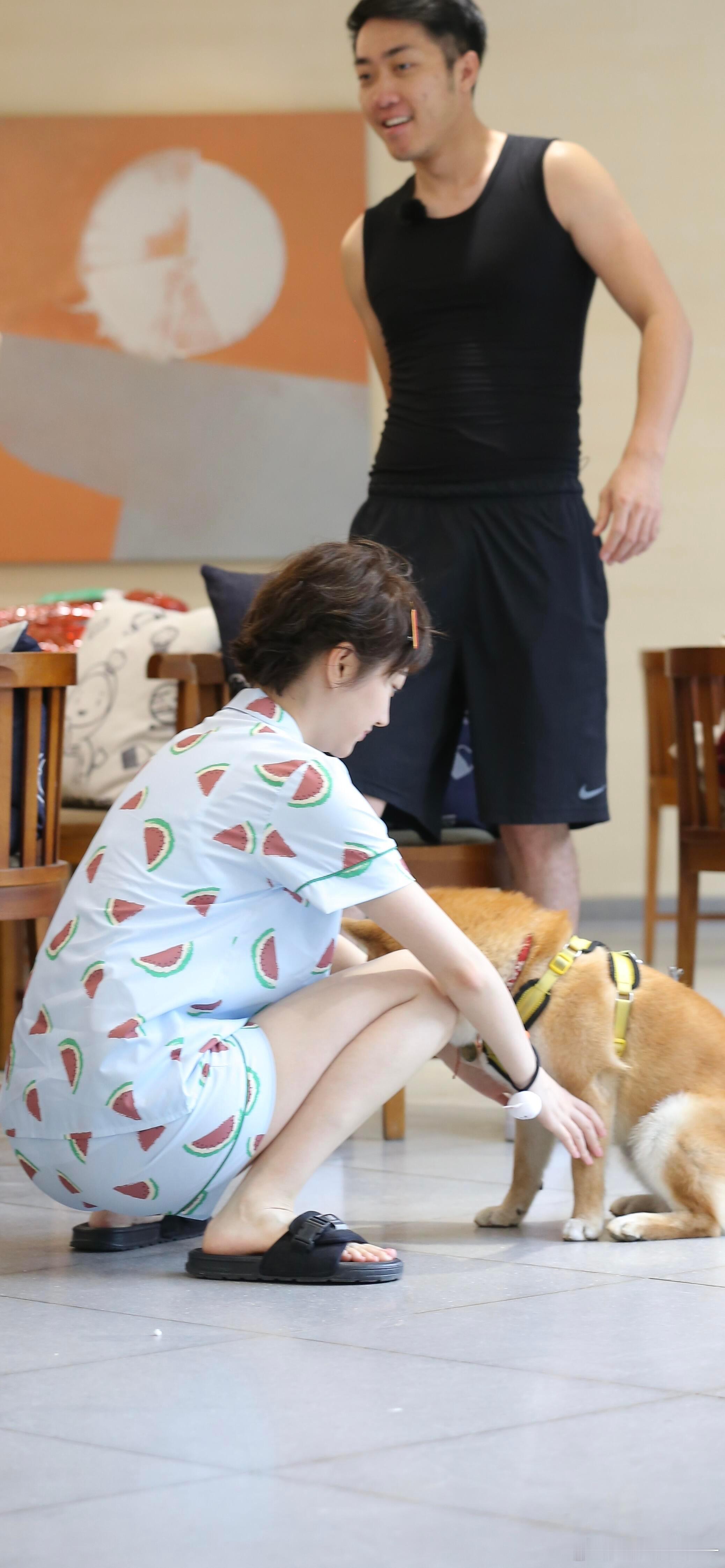 景甜素颜睡衣跟狗狗玩耍邻家乖乖女既视感