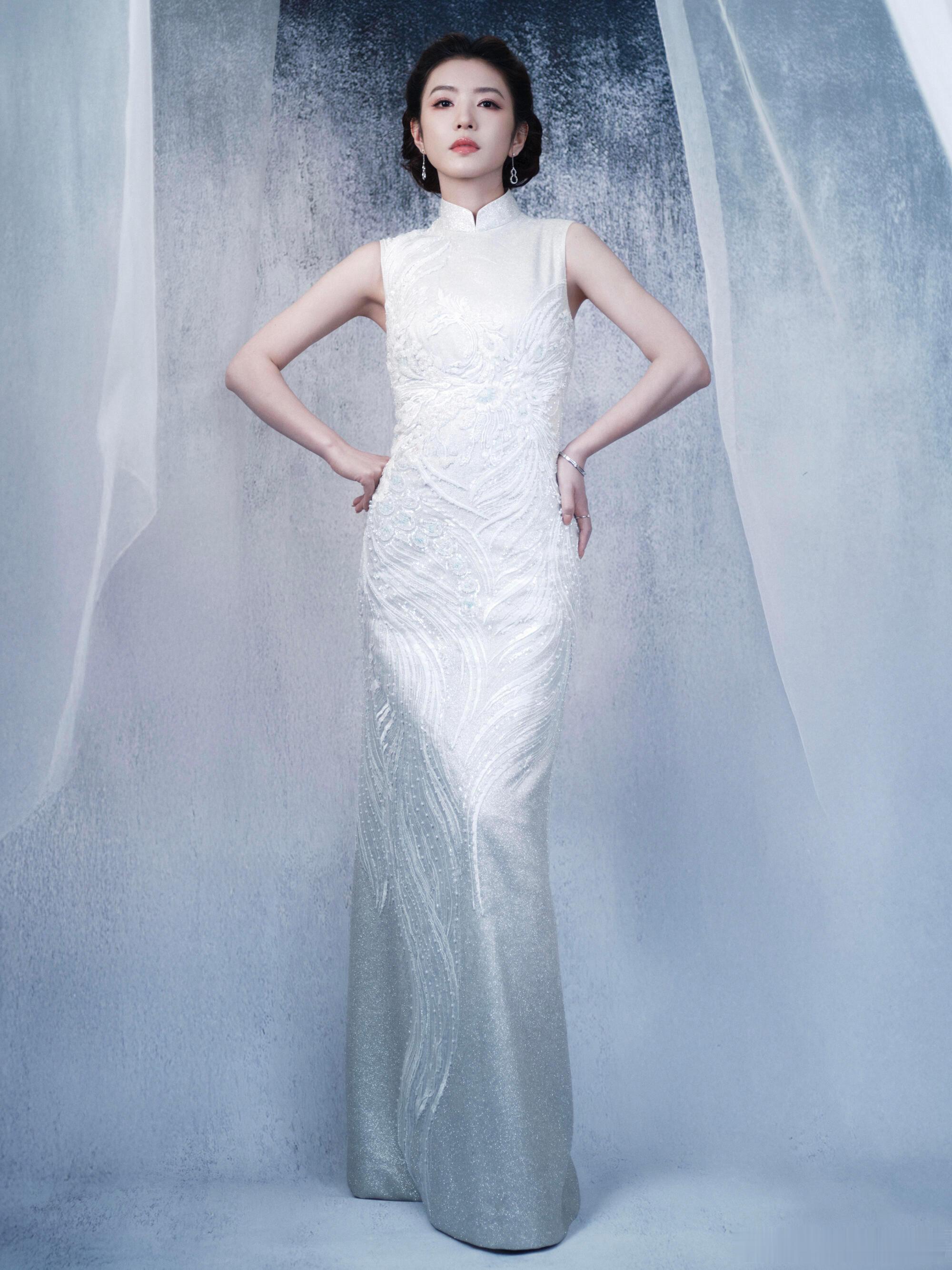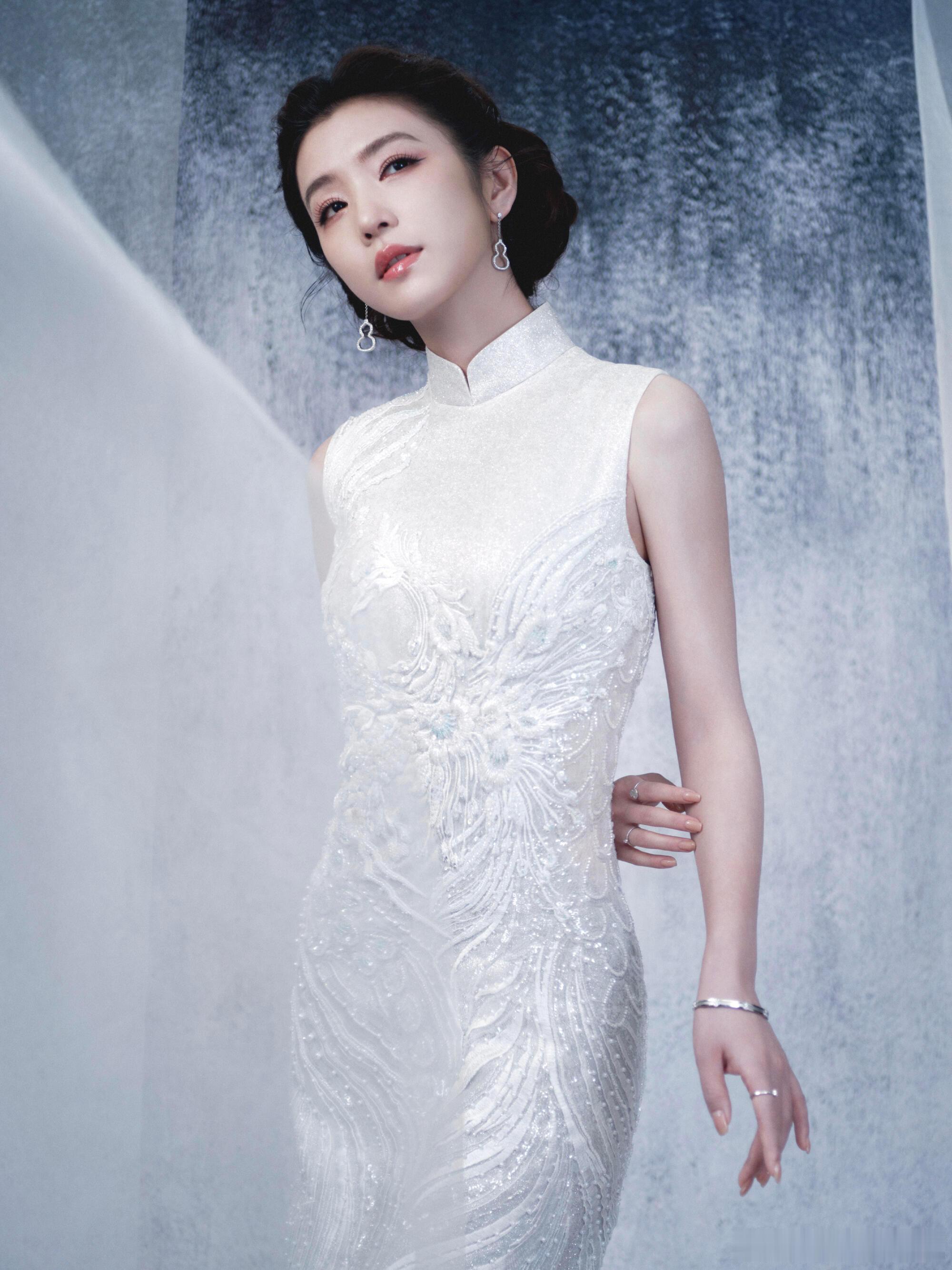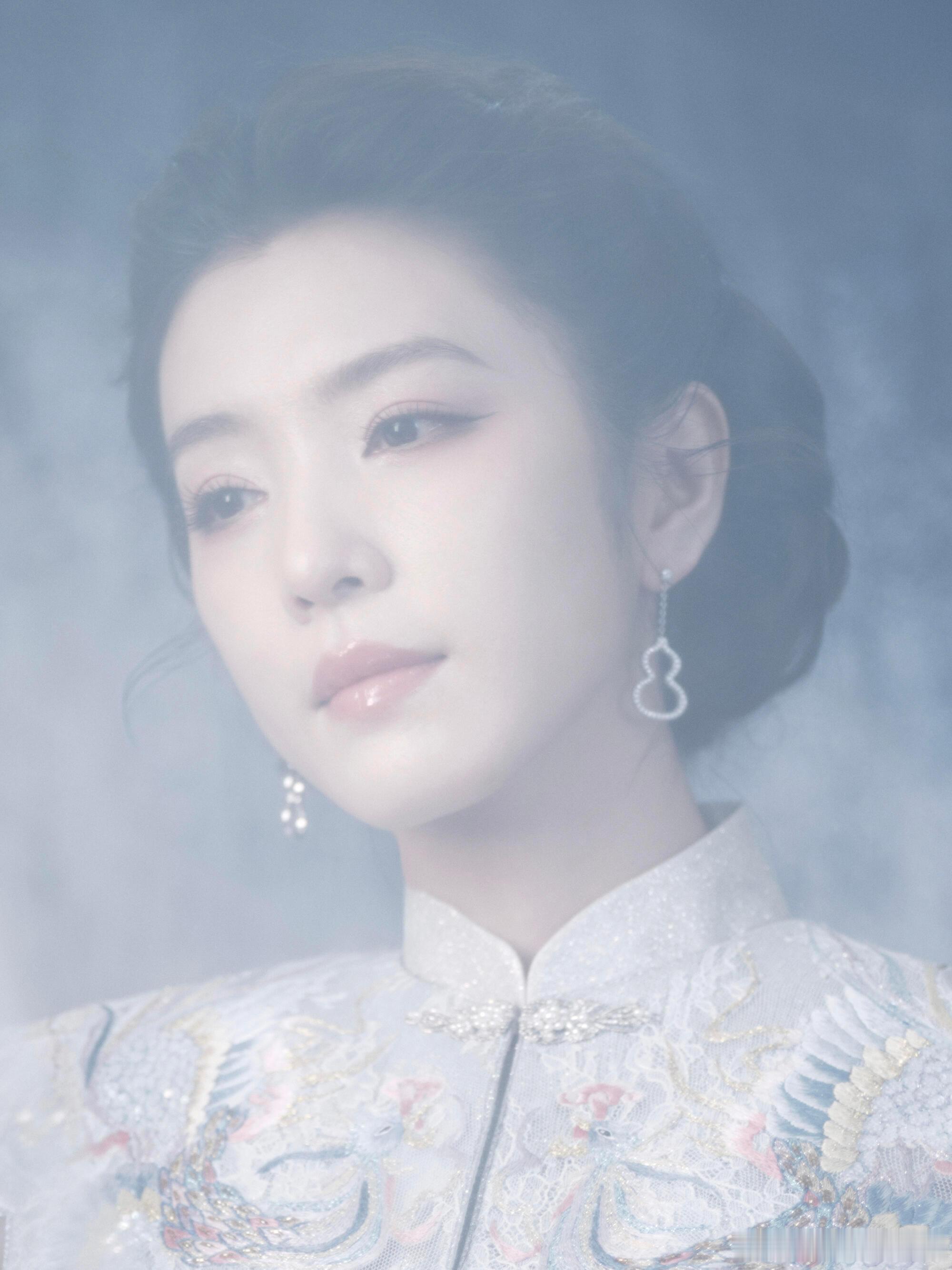 李云霄百花迎春造型,穿着茧迹浮光系列刺绣旗袍,佩戴着麒麟 Wulu 系列珠宝,古典大气✨也期待燕子娘!
