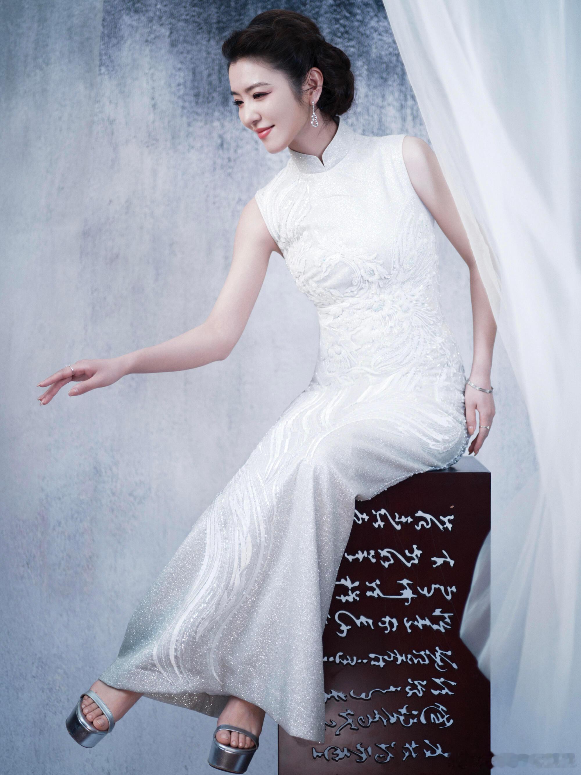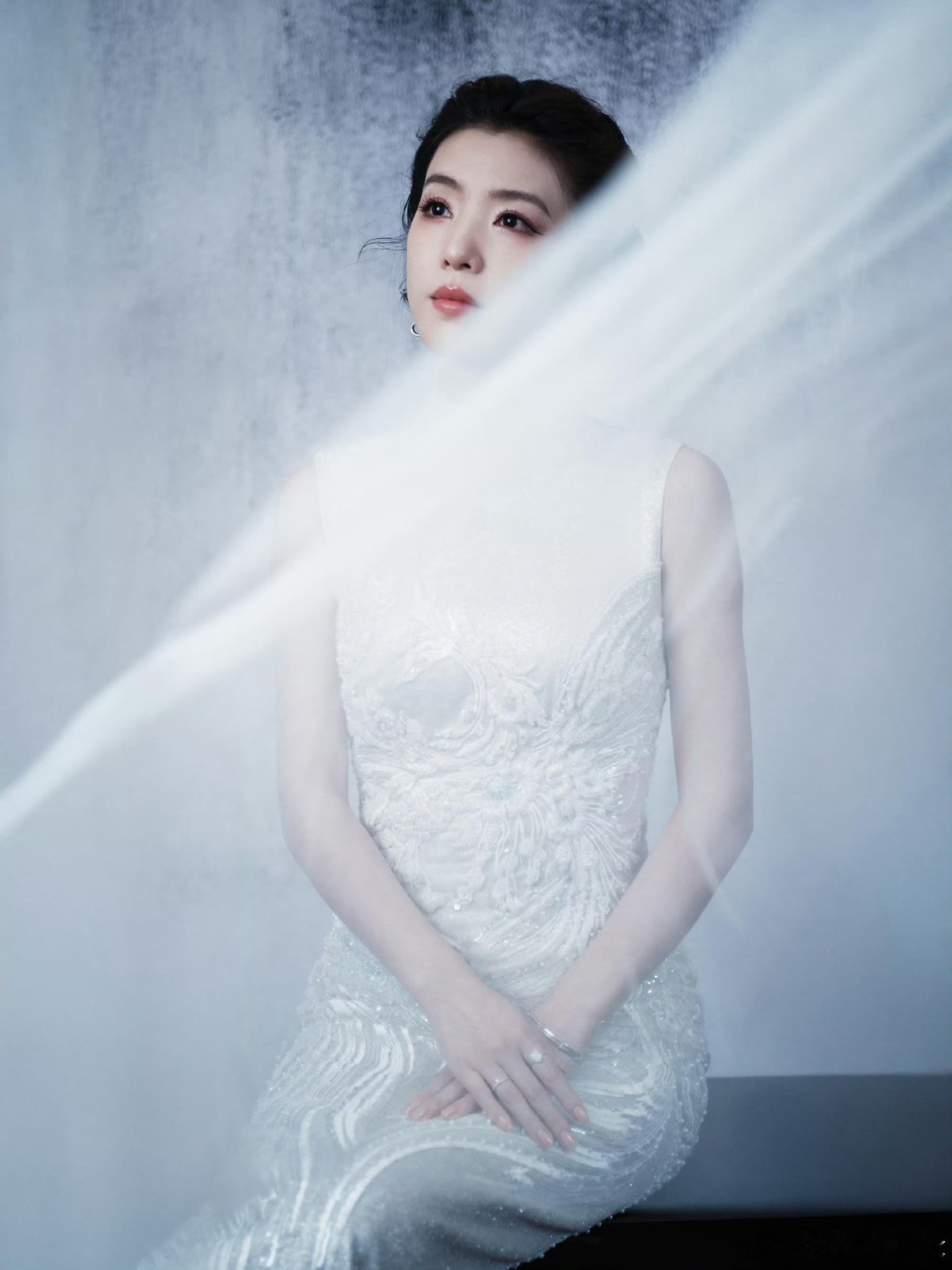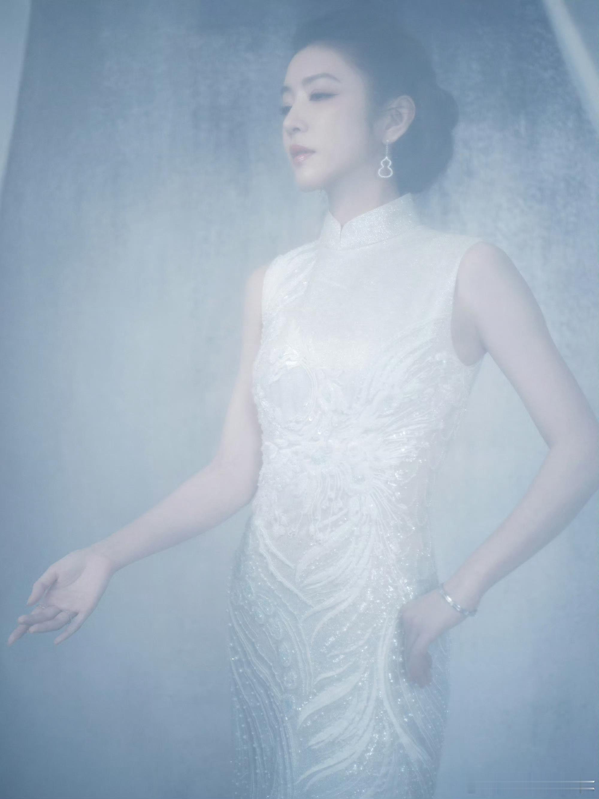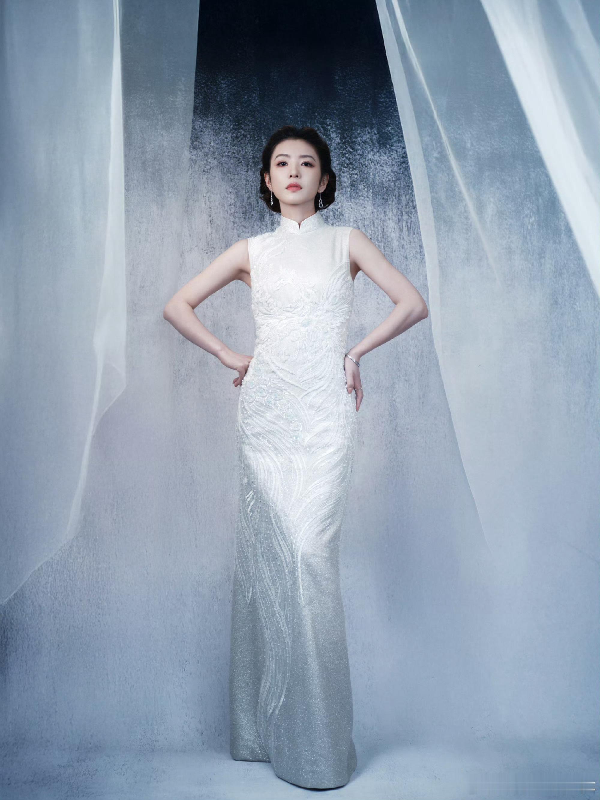 李云霄百花迎春造型,穿着茧迹浮光系列刺绣旗袍,佩戴着麒麟 Wulu 系列珠宝,古典大气✨也期待燕子娘!