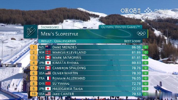 苏翊鸣晋级坡障决赛苏翊鸣预赛第8