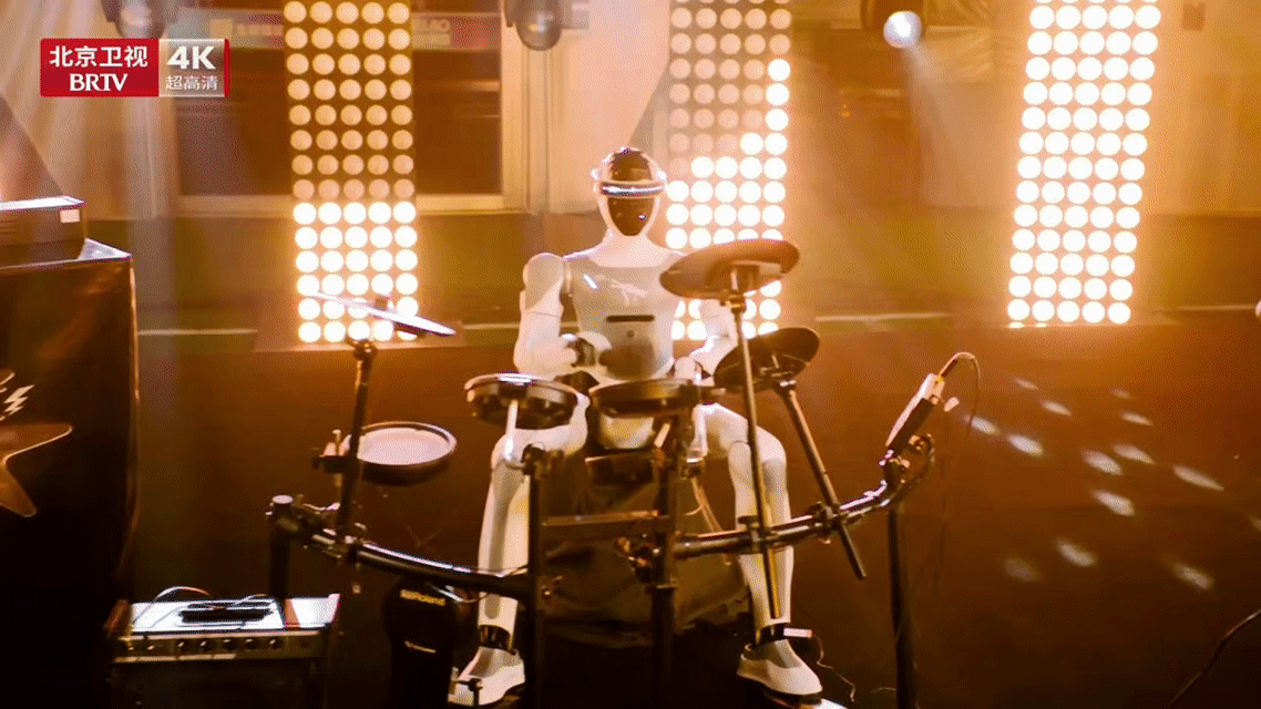 2026春晚直接把未来感焊在舞台上!🤖架子鼓甩槌带风,吉他贝斯精准卡点,连台下应援都是机器人整齐划一手幅,这哪里是演出,分明是硬核科技大秀!北北这波细糠太顶,沉浸式感受AI时代的年味,眼界彻底被打开了北京台春晚