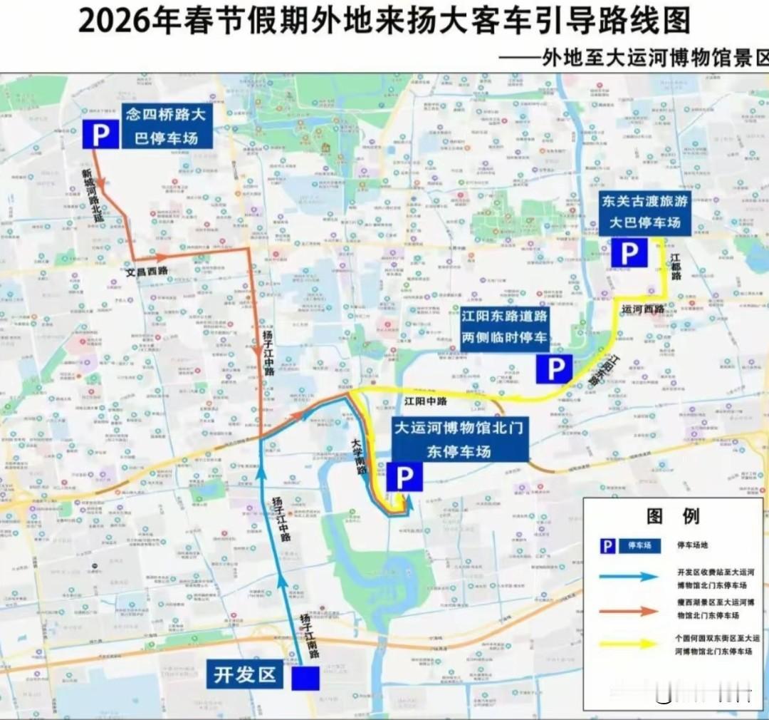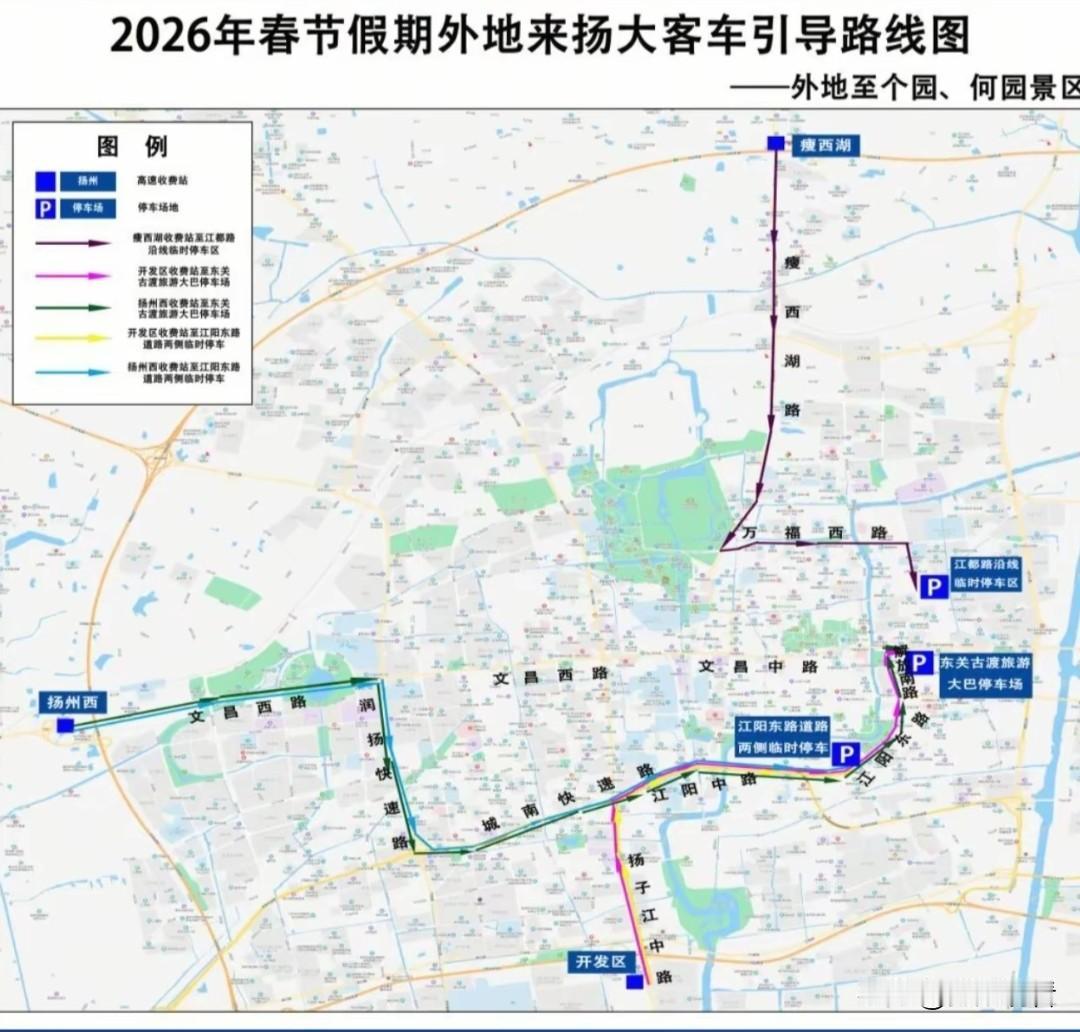 2026扬州春节来扬外地大巴车必看🚍行车+停车全指南 来扬州过年的旅游大巴司机师傅看过来! 超清晰引导提示,不迷路不被罚✅   📅 适用时间 2026春节假期(通用指引) 外地来扬旅游大客车专用 🚗 核心提醒|这些路段禁行/禁停 老城区、景区周边核心道路 大巴车禁止驶入/临时停靠 务必按引导走指定路线! 🅿️ 官方指定停车区域 ✅ 景区专用大巴停车场 ✅ 临时停靠疏导区 ❌ 严禁随意路边违停 ❌ 禁行路段不可上下客 🧭 推荐行车路线 高速出口 → 景区 → 停车场 全程按交警引导行驶 直达瘦西湖、东关街、个园、大明寺等核心景点 🚌 接驳小贴士 大巴统一停放在外围指定停车场 乘客步行/免费接驳车进入景区 省心又不堵! ⚠️ 重要提醒 1. 服从现场交警 & 志愿者指挥 ​ 2. 禁行路段切勿硬闯 ​ 3. 景区直达专线、定制公交不免费 ​ 4. 高峰时段建议错峰进出城 来扬州过新年,一路畅通不添堵🧧