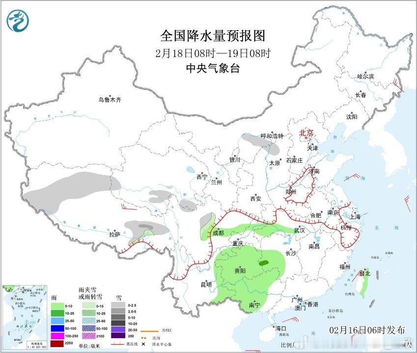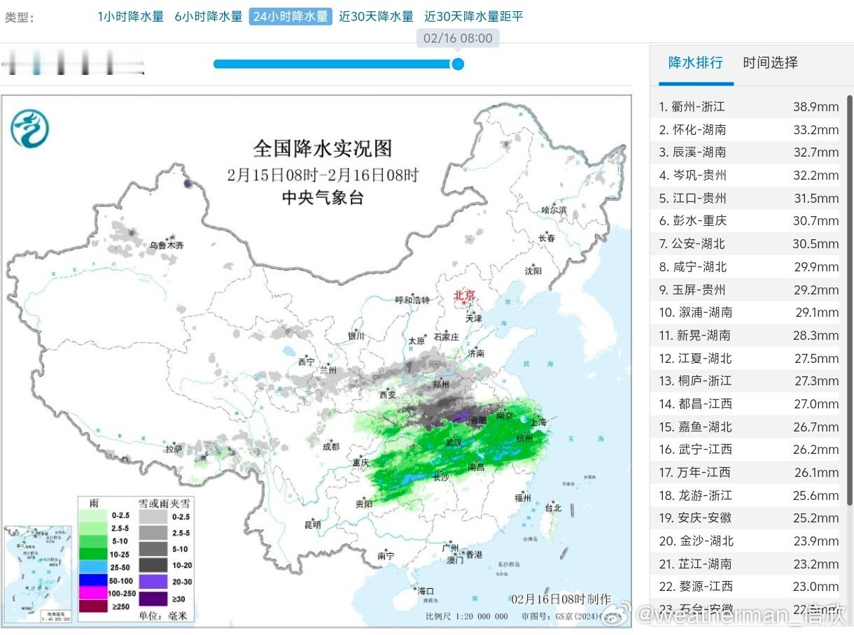 【雨雪】昨天到今晨,冷暖空气激烈交锋,我国黄河以南地区出现较大范围雨雪天气,贵州到江南多地出现中到大雨,并伴随对流,局地还有短时强降雨或雷雨大风。山西南部、河南、湖北北部、安徽部分地区出现降雪或雨转雪。降雪主要在昨晚到今晨。山西、河南部分地区今晨有明显积雪,河南驻马店达到了9厘米,山西乡宁6厘米。