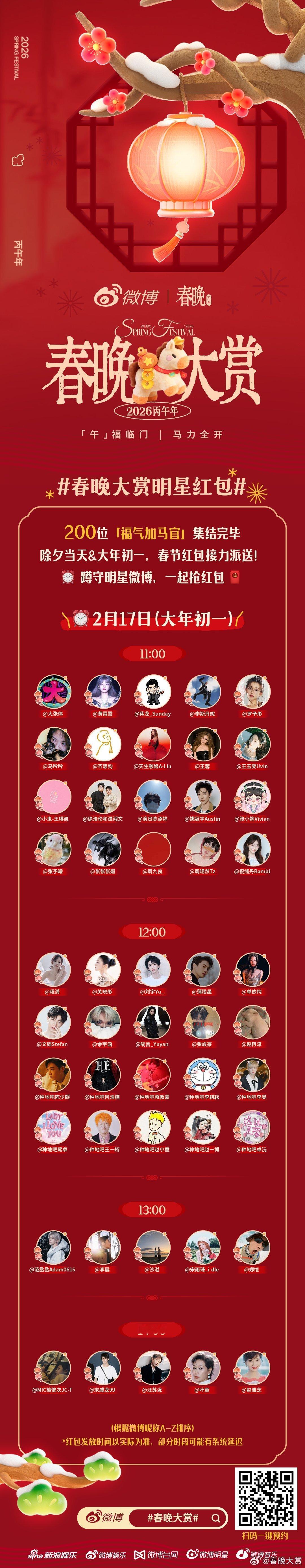 热点观点🧧:红~包~来~啦~谁还敢离开春晚大赏半步除夕当天&大年初一明星红包 狂撒百万红包雨,明星接力派送不停歇全阵容名单新鲜出炉,200位福气加马官马力全开,强势加入助阵戳链接【春晚大赏明星红包限时抢】一键预约,抢红包先人一步🧧春晚大赏 ~热点现场~