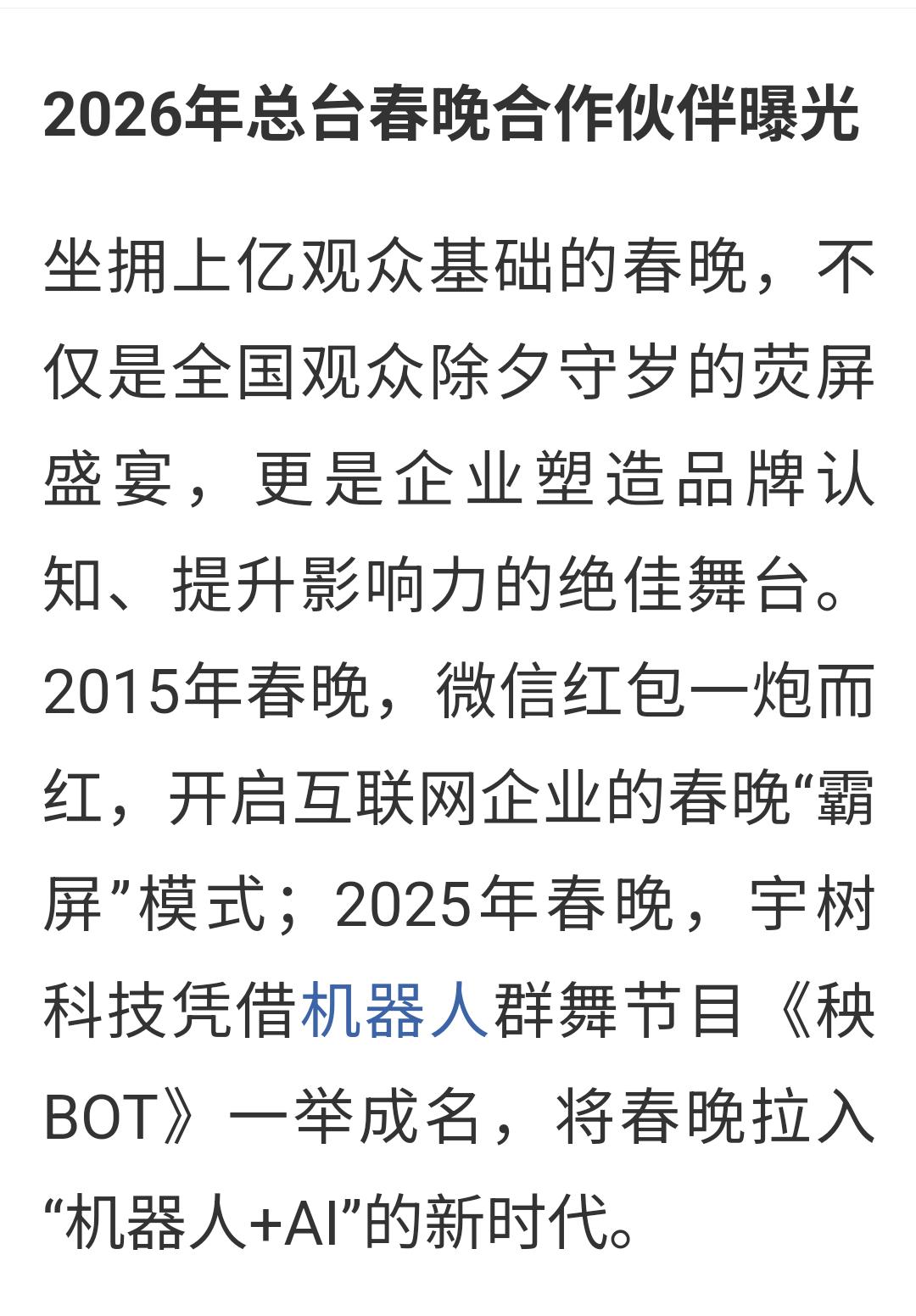 辞旧迎新之际,职业股民的注意力还是无法彻底离开股市,这是什么样的心态啊! 每次长假,对于职业股民来说都是煎熬的,平时除了股市,再很难有其他的兴趣爱好,长假也是应酬极少,A股休长假,真的感觉无所事事,非常难熬,对其他事情也提不起兴趣,时不时就会打开软件瞅两眼。不知道大家是不是和我一样呢? 虽然A股休市,但是港股今天上午还开盘,还有一上午正常交易,看到恒生科技指数一上午就实现了V转,这个低点已经连续两周多守住了,AI应用 半导体等大涨。 再加上今晚的春晚,有不少科技企业上台角逐,去年春晚机器人首秀之后,春节过完,机器人板块大涨了两波,不知道马年开盘之后,AI应用 机器人等板块还能不能再现辉煌? 期待中…… 长假还有7天,慢慢享受,慢慢煎熬吧![我想静静] 祝所有头条上看到的朋友们春节快乐,马年马上赚大钱。