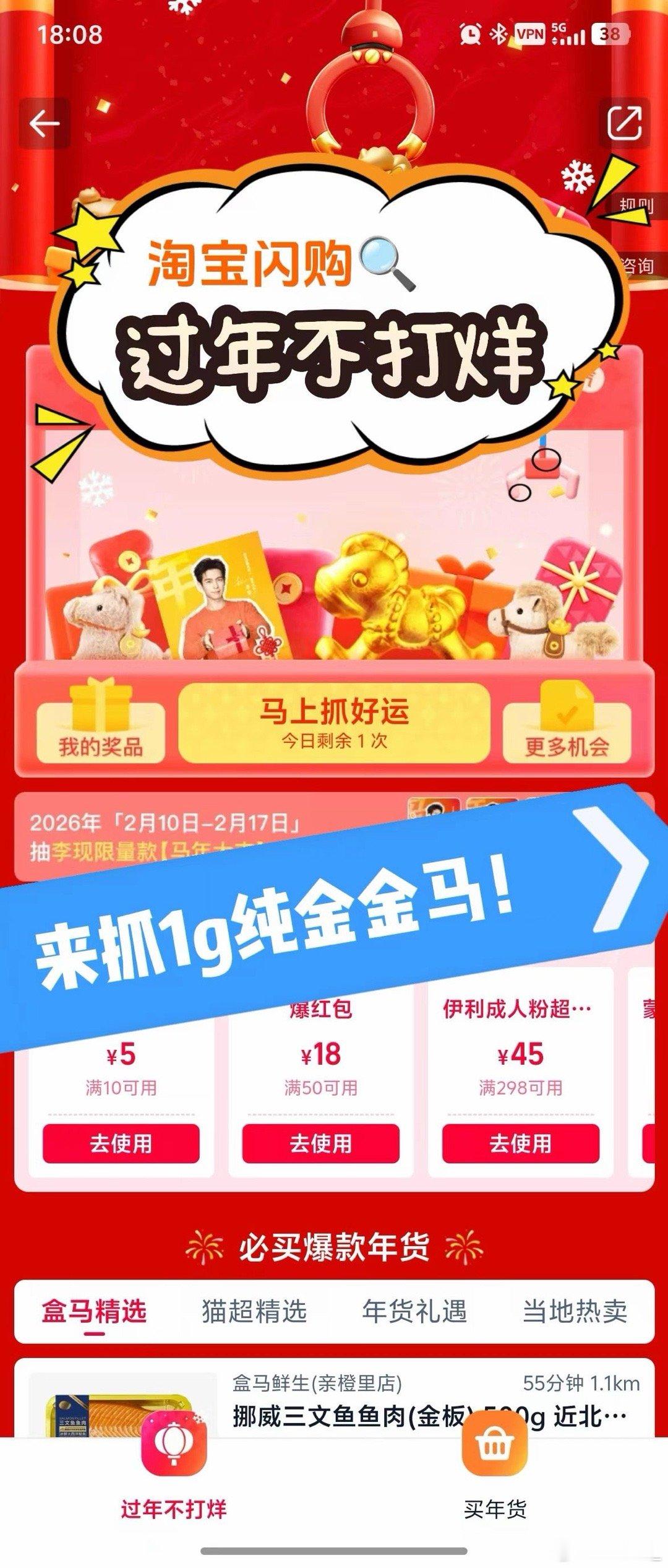 过年上淘宝闪购抓金马赢好运淘宝闪购过年不打烊新春除夕氛围浓,阖家欢饮团圆酒,同赏新春春晚,抓金马解锁黄金好礼!春节上淘宝闪购搜【过年不打烊】,抽百万份好礼,赢1g纯金金马,新年好运更快到家!骏马贺新春电子贺卡