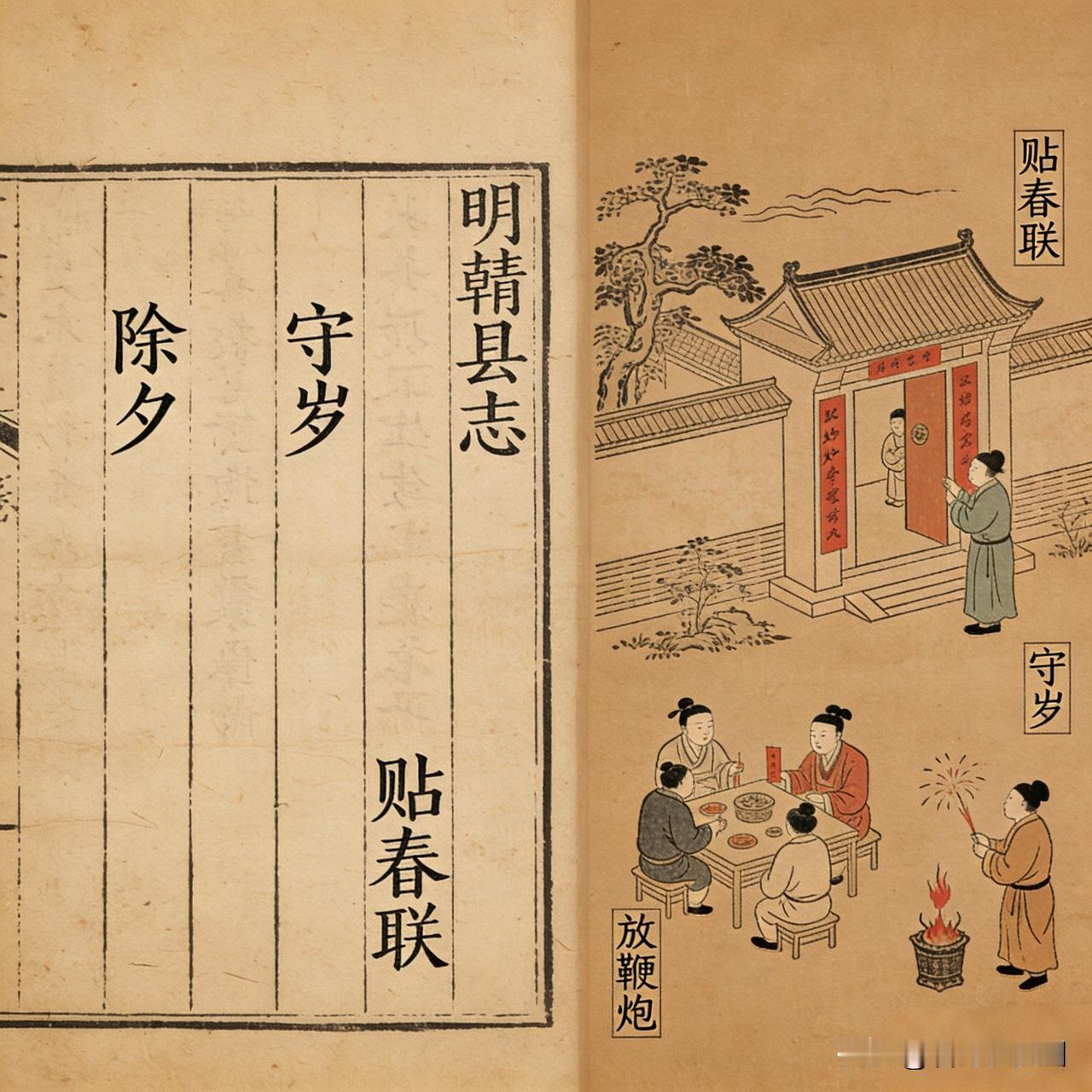明清除夕居然能结婚?贴倒酉烧犁铧,比现在会玩多了! 大伙好!这两天刷视频,全是晒年夜饭、看春晚的。但咱说实话,现在过年除了抢红包,是不是总觉得缺点啥? 我昨晚特意翻了几本明清时期的河南老家县志,好家伙,不看不知道,老祖宗那会儿过除夕,那才叫一个有仪式感!不光有贴春联守岁,还有好些咱们听都没听过的新鲜玩法,寓意还特别吉利,简直是古代版的“氛围感天花板”。 先说个你们绝对想不到的——在明朝的河南舞阳县,除夕这天居然是结婚的好日子! 县志里明明白白写着八个字:“除夕,嫁取无忌”。 啥意思?就是说在古人眼里,除夕是百无禁忌的大好日子,这时候结婚,那叫喜上加喜,能把新年的喜气直接带进洞房。搁现在谁要是大年三十办婚礼,你肯定觉得离谱,但在几百年前,这可是趁着神灵在家,专门挑的好兆头! 还有一种习俗,现在农村偶尔还能见到,叫“烧犁铧”。 不是让你去犁地啊,这玩意儿特神奇。嘉庆年间的《渑池县志》记载,大年三十晚上,把犁地的铁铧烧得通红,然后往上头浇醋。“刺啦”一声,白烟直冒,那味道你甭管好不好闻,古人端着它在院子里每个旮旯都走一圈,这叫“解疠”。 说白了,这就是老祖宗的“空气消毒法”,用醋蒸汽给全家来个深度清洁,驱赶瘟疫。虽然咱现在有消毒液了,但这份祈求全家无病无灾的心意,是不是特朴素,也特戳人? 最让我觉得有意思的,是一个叫“贴倒酉”的习俗。 这“酉”字,按咱们现在话讲,就是“有”的谐音。道光年间《武陟县志》说,当时的人不光在器具上贴,连树上都贴这个“酉”字,而且必须得倒着贴。 为啥?图的就是个“越倒越有”! 这不就跟咱们现在倒贴“福”字一个道理嘛!老百姓对生活的盼头其实一直没变过,不就是希望手里“有”钱,仓里“有”粮,心里“有”底吗? 还有焚苍术辟瘟疫的,在高竿上挂灯笼“照财”的,甚至还有叫“跌千斤”的...... 看完这些我才明白,咱们总觉得年味儿淡了,其实淡的不是年,是那些带着美好寓意的“老讲究”。以前没手机没网络,但那一夜,一家人围着通红的犁铧,闻着苍术的草药香,心里头那份对未来的敬畏和期盼,比现在的烟花还亮堂。 马年除夕,愿大家也能像古人那样,哪怕只是倒贴一个“福”字,也要把这份“越倒越有”的好彩头接住了! 话说,你们老家还有哪些奇特的过年老规矩?别藏着,评论区晒出来,让大家开开眼!