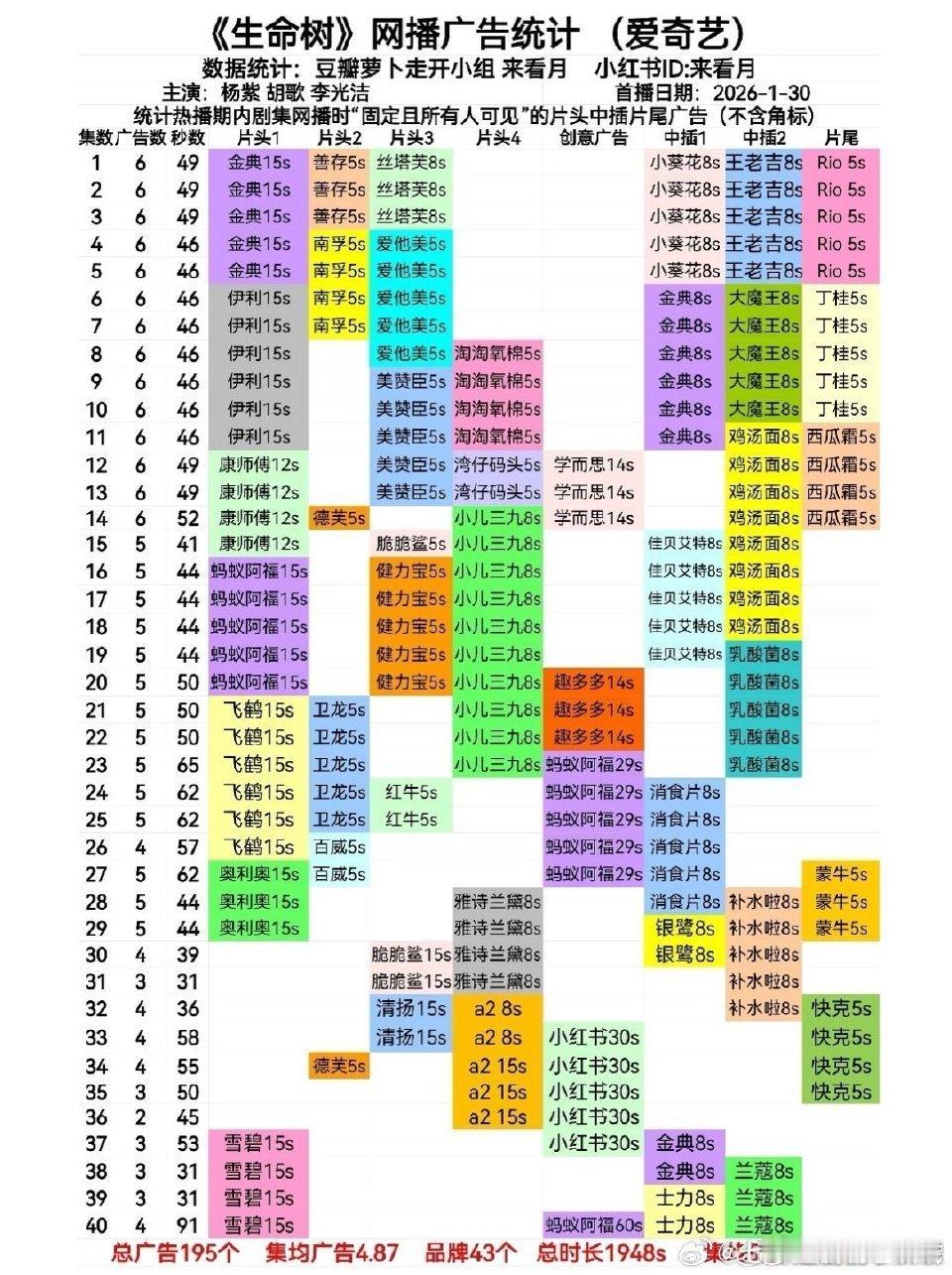 杨紫的《生命树》招商能力真不错,2026年全平台总广告数第一、集均广告数第一、品牌数第一