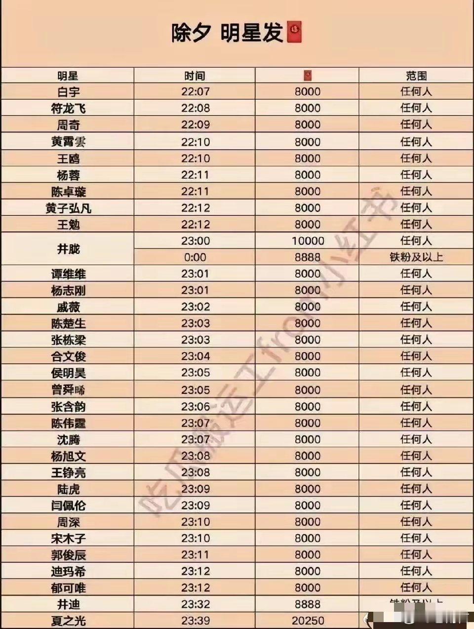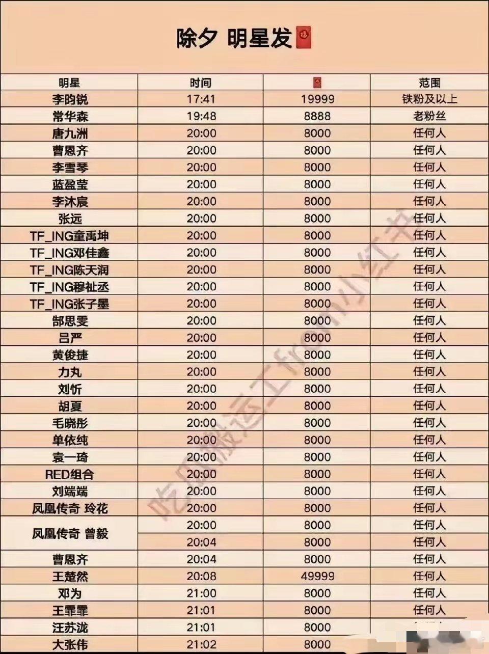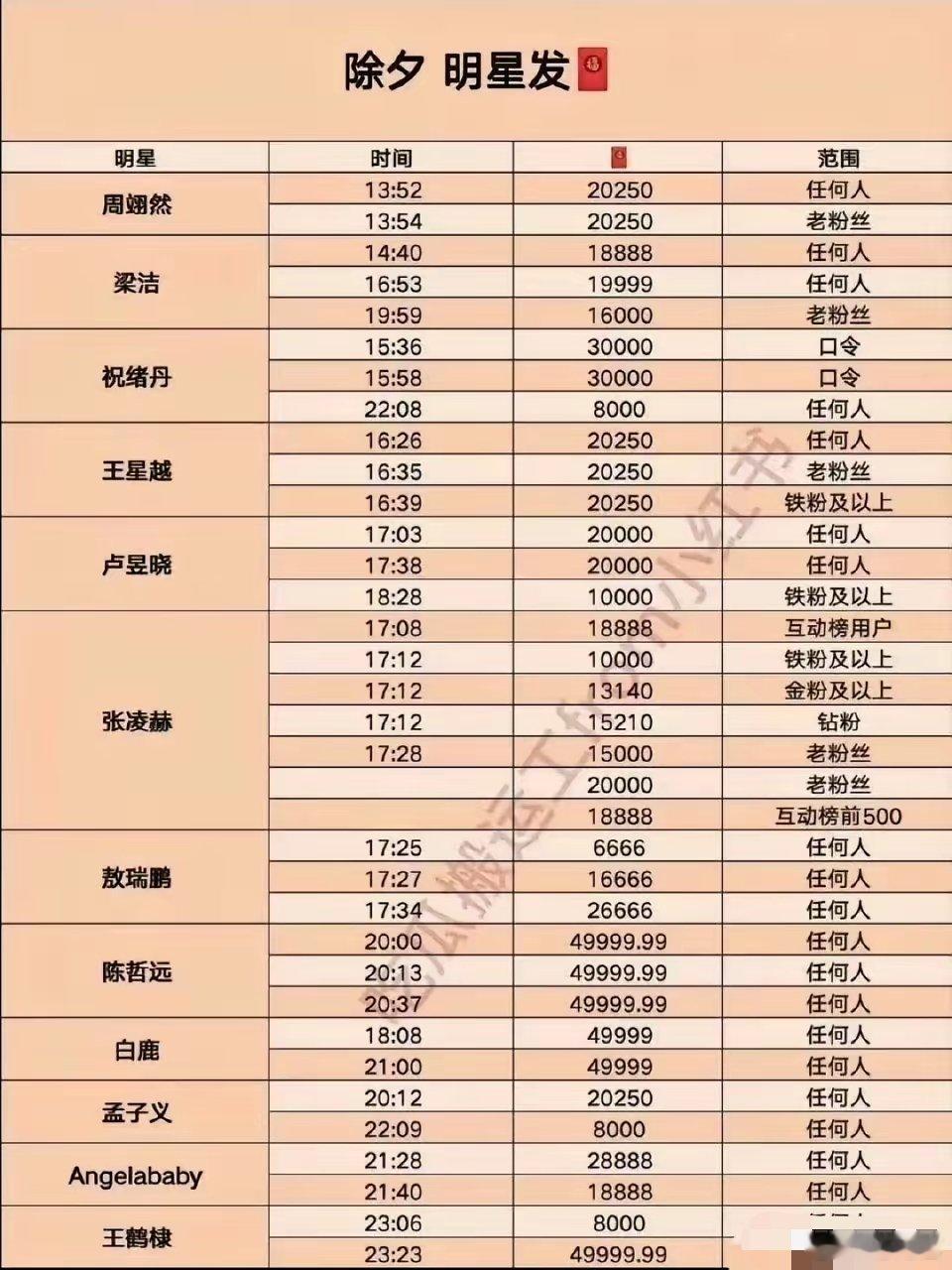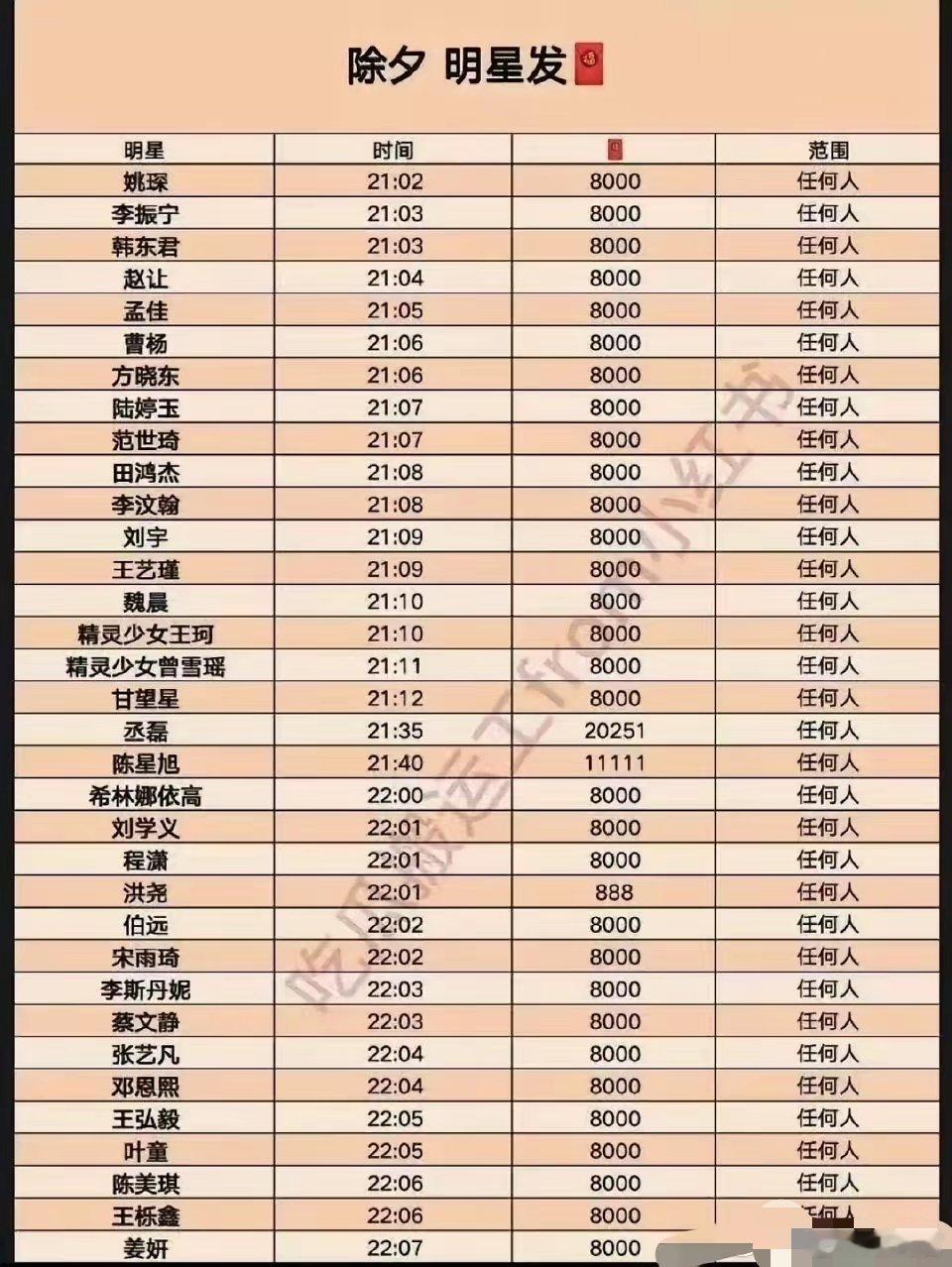 明星红包新年明星红包一览表,抓紧时间惠存从一点开始,能不能发财就看今天啦!陈哲远的红包不小呀,而且连发三个,每个都是任何人可以领取。能不能抢到就看网速啦。今天我啥也不干,就等着抢红包嘞。张凌赫的我应该领不到了,毕竟我也是那种不怎么玩儿的人。喜欢很多明星的颜,但是没有办法当铁粉,做数据啥的。谁抢的多了一定要发出来看看啊