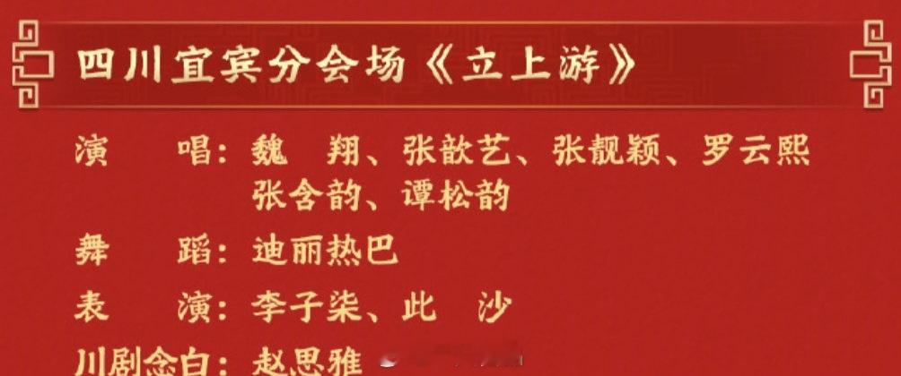 马年春晚宜宾分会场表演阵容迪丽热巴、罗云熙、谭松韵、此沙、张含韵、张靓颖、李子柒