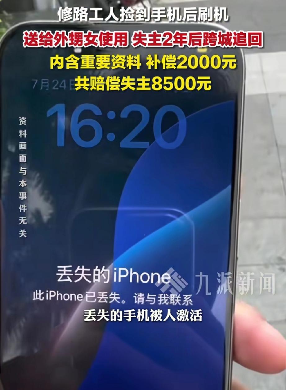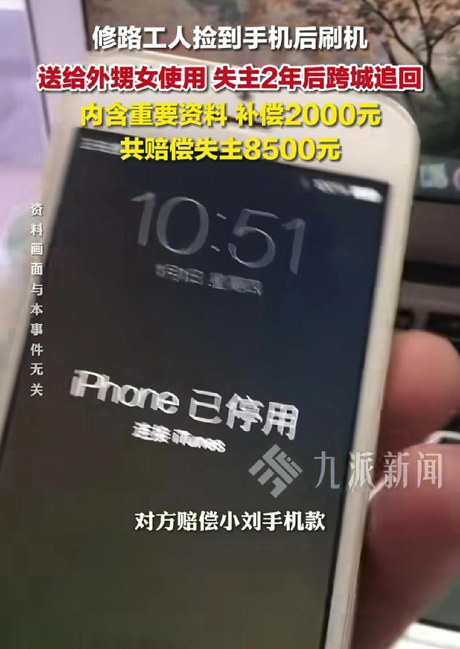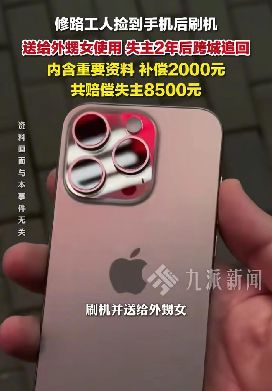 太丢人!黑龙江大庆一男子捡苹果手机不还,直接刷机送给外甥女,本以为神不知鬼不觉,两年后被失主定位找到,不仅赔钱还丢尽脸面,这事给所有人敲响警钟。 一位男子在路上捡到一部苹果手机。他没想着找失主,直接把手机拿去刷了机,然后当作礼物送给了自己的外甥女。 这一送,就过去了两年。 可失主小刘一直没忘。两年前她购物时弄丢了这部手机,里面存着特别重要的资料。当时虽然报了警,但因为忙着备考,就没顾上一直追。可这事儿,她心里一直惦记着。 两年后的一天,小刘突然发现,她那部丢失的手机被重新激活了!她赶紧通过官网查询,发现手机定位在沈阳。 小刘立刻报了警。 警察顺着线索找到了使用手机的女孩。女孩说,手机是舅舅送的。她舅舅,就是那位捡手机的大庆修路工人。 最后经过调解,捡手机的人赔了失主8500块钱。其中,2000块是手机本身的钱,剩下的6500块,是赔偿失主资料丢失、两年奔波这些损失。 这下好了,钱赔了,面子也丢光了。 网友吵翻天:这钱该赔吗? 这事儿一出来,网上就炸了锅。 有网友说:“赔8500?这也太多了吧!人家是捡的,又不是偷的,冤死了!” 这话乍一听,好像有点道理。毕竟不是偷不是抢,路上捡的嘛。 可我想问问这么想的网友:如果是你的手机丢了,里面有孩子的照片、有再也找不回来的工作资料、有这两年你有多不方便,你还觉得赔得多吗? 失主小刘这两年里,多少次为丢了重要资料着急?多少次盼着手机能找回来?这些能用钱算得清吗? 捡到东西不还,法律上叫“不当得利”。 《民法典》写得清清楚楚:捡到别人的东西,得归还。要是自己留下了,失主就有权要回来。东西坏了或者找不回来了,那就得折价赔偿。 这个案子里,捡手机的人直接把手机刷机送人了,等于把失主找回的路全堵死了。要不是两年后手机被激活,这事儿可能就永远没人知道了。 再说这8500块。看起来比一个新手机贵,但账不能这么算。失主手机里那些重要资料,这两年里的着急上火,还有报警、查定位、跑派出所的时间和精力,这些难道不是损失吗? 法律上赔偿的,不只是一个手机的钱。 这事儿给咱们提了个大醒 你看这位捡手机的大哥,本想给外甥女送个礼物,结果两年后不仅赔了钱,还在亲戚面前丢了人。外甥女用了两年的手机被收走,孩子心里啥滋味? 一个“贪”字,最后换来个“亏”字。 有人说捡东西和偷东西不一样。对,心思是不一样。可在法律上,非法把别人的东西占为己有,不管是捡的还是偷的,都得承担责任。 你以为捡了个便宜,其实是在给自己埋雷。 不知道哪天就会炸,而且炸的时候,往往比当初捡的时候疼得多。 最后说两句 这事儿说到底,就是一句话:不是自己的东西,别伸手。 路上捡到东西,最好的办法就是交给警察,或者想办法还给失主。你省心了,良心也安了,晚上睡觉都踏实。 这位大哥花了8500块买了个教训。这教训,够他记一辈子了。 你觉得,这8500块该不该赔?如果是你捡到一部手机,你会怎么做?