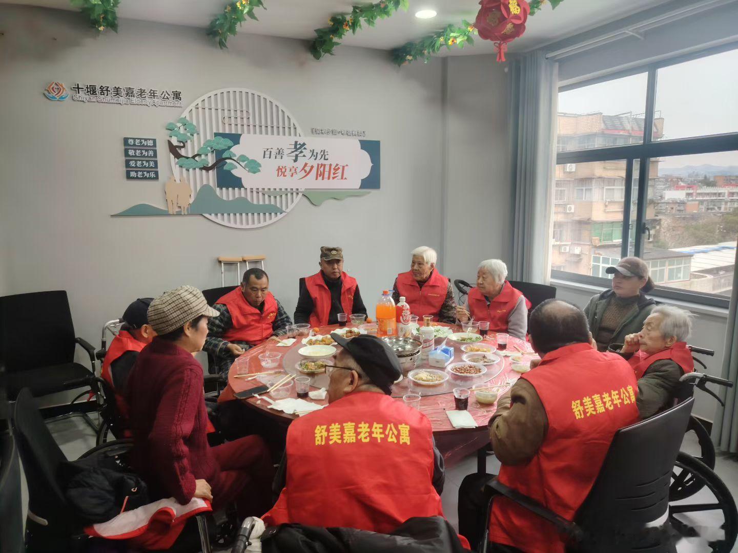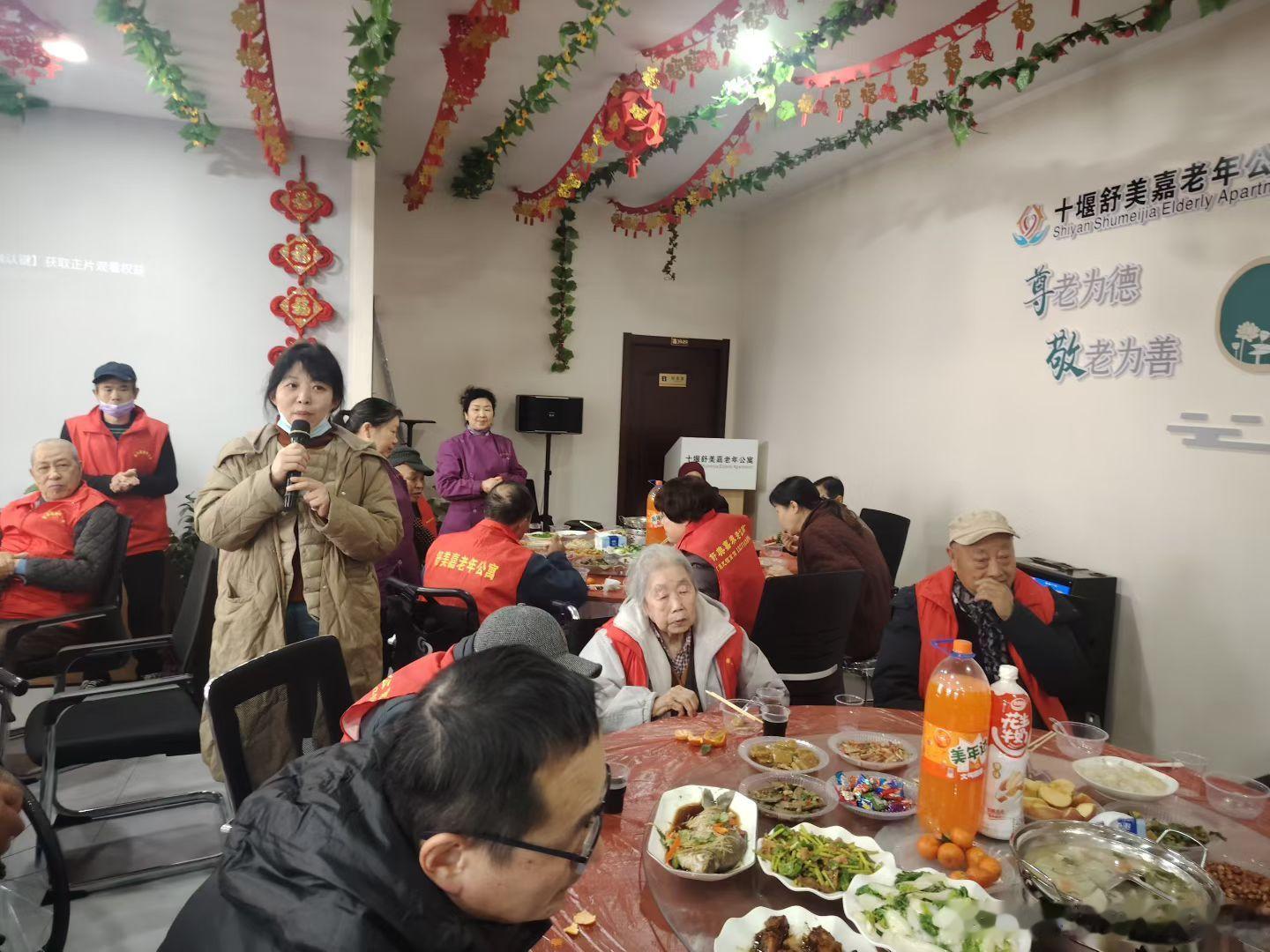 今天是除夕,84岁娘在养老院参加聚餐。2026年2月16日中午摄于湖北十堰张湾十堰舒美嘉老年公寓。
