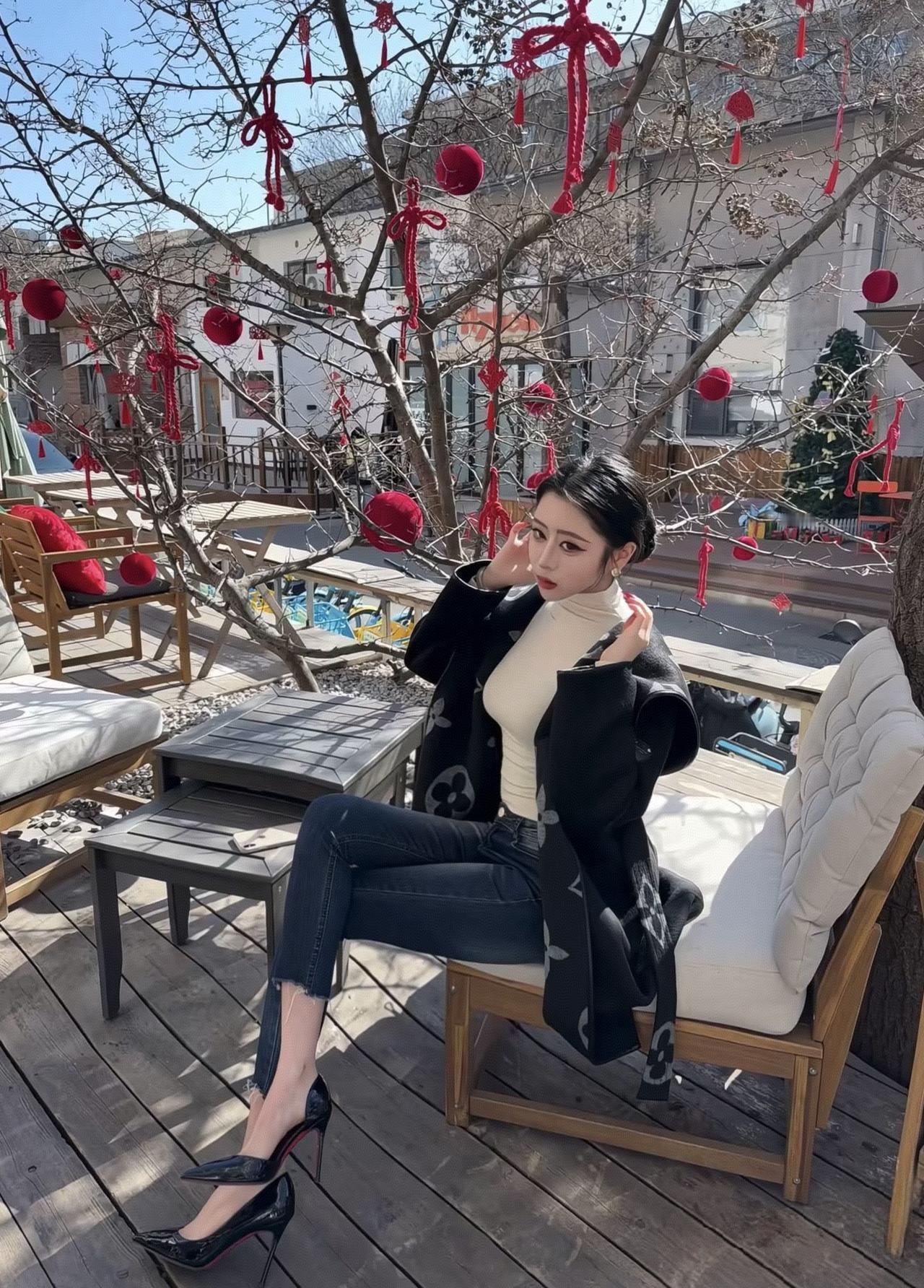 粉裙映花影,玉足踏春光。
