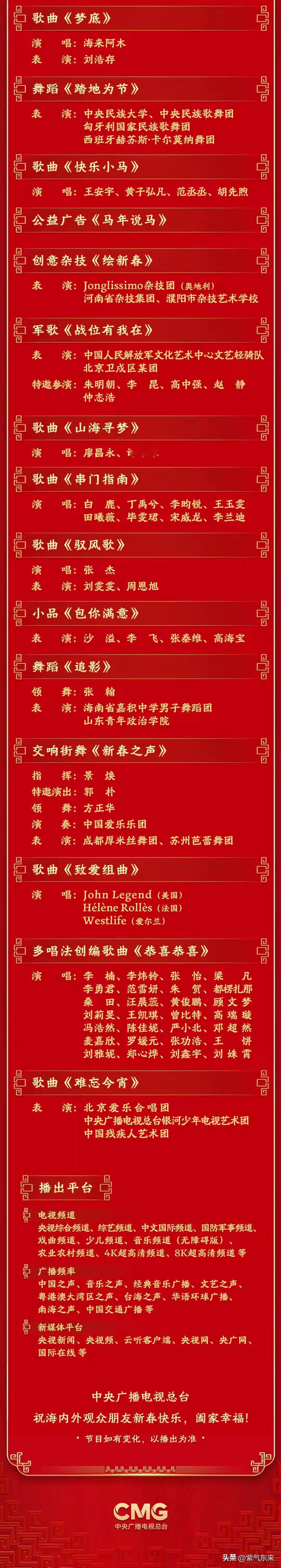 问一下大家 每年除夕春节联欢晚会,大家都还看吗! 刚看了下央视的2026春节联欢晚会节目单,没有太大变化! 我是很久没有看央视的春节联欢晚会了,自从赵本山老师的小品被下架多年,我都很少关注央视春节联欢晚会了! 赵本山老师说的对,联欢晚会就是让大家一起欢快喜庆的过春节,节目能给大家带来快乐和喜悦,就足够了! 我个人很认可! 但是站在央视的角度,看待问题的角度不同,央视联欢晚会要多元化发展,让中华文化以多元化方式展现出来,小品也是其中一种方式!