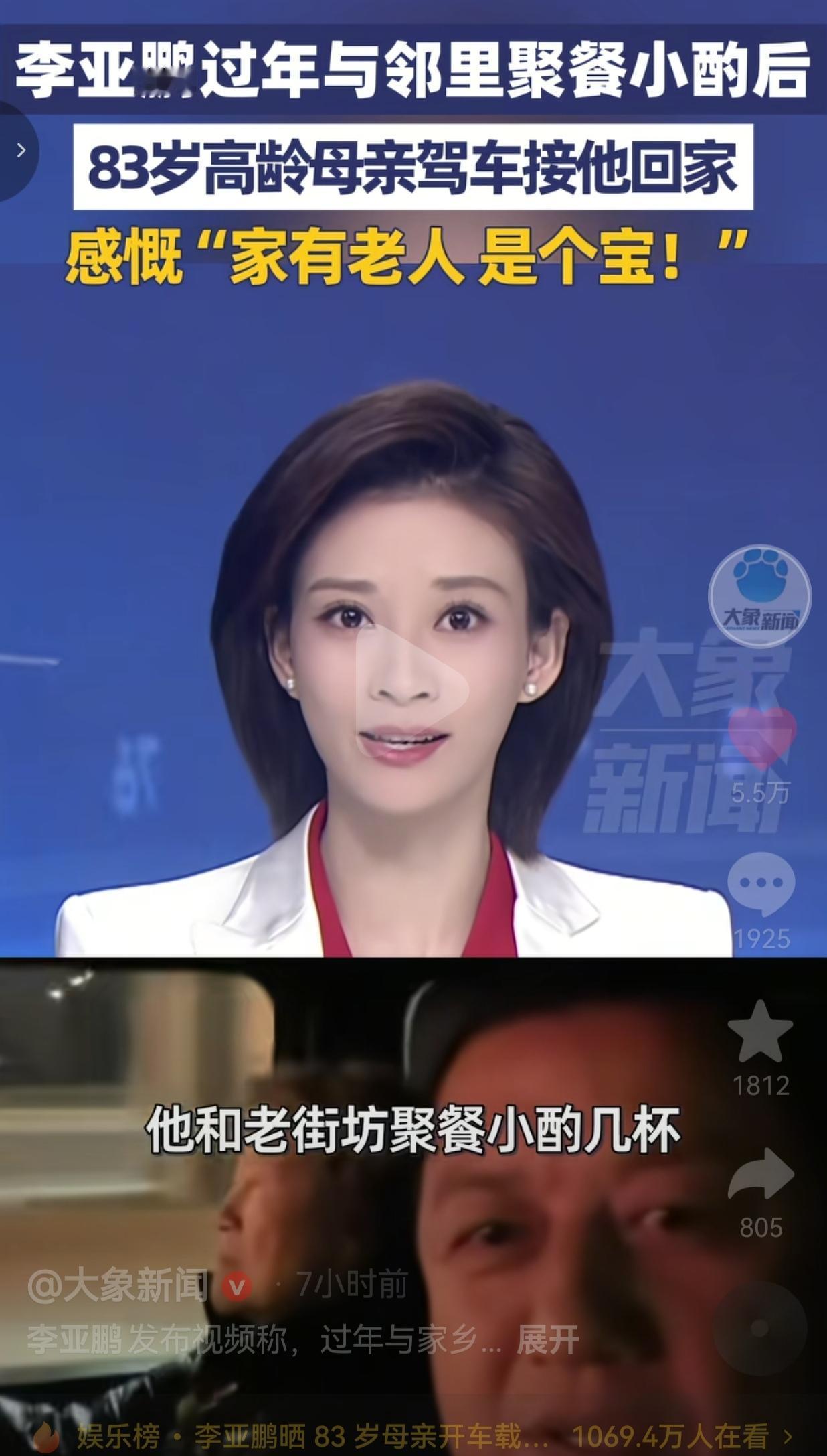 这也太幸福了!怪不得很多人都说,只要有妈在,你永远可以是那个无忧无虑地孩子呢?2月15日晚,他回了老家,跟老街坊们聚餐小酌了几杯,有点上头,喝完酒没法开车,回家只能找人来接。 结果,来接他的不是司机,不是助理,而是他83岁的老母亲——这位“83岁老司机”亲自开车来接他回家。 老太太系着安全带,稳稳地握着方向盘,载着已经50多岁的儿子往家走。 李亚鹏坐在副驾,像个刚放学的小学生,对着镜头暖心感慨:“家有一老,如有一宝啊,我这50多岁的人了,还能被83岁的妈妈开车接回家。” 网友们看完破防了,有的网友说:“不管多大,在妈妈眼里,我们永远是孩子。” 也有的网友说: “我爸60了,我奶奶还会追着他打,让他少喝点酒。” 还有的网友说: “突然好想我妈,明天就回家看看。” 这才是过年最暖的画面啊。李亚鹏再是明星、再是老板,在83岁老妈眼里,还是那个喝多了需要接回家的孩子。 现在的人总说,幸福是赚大钱、住大房子,可看完这个视频才明白:真正的幸福,是你50多岁了,还有妈惦记着你喝多了没,还能开车来接你回家。 所以啊,别总说忙,有空多回家看看。哪怕只是陪爸妈吃顿饭、聊聊天,对他们来说,就是最好的礼物。 针对此事,你有什么看法呢?欢迎大家评论区讨论留言。