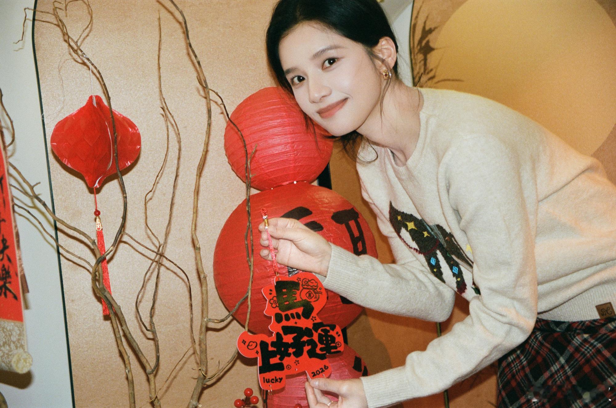 张婧仪福气小子来到捕捉到一只春节限定版新年ccd照片好有感觉,红围巾配温柔笑颜,连修勾都跟着沾喜气2026,和婧仪一起红红火火!
