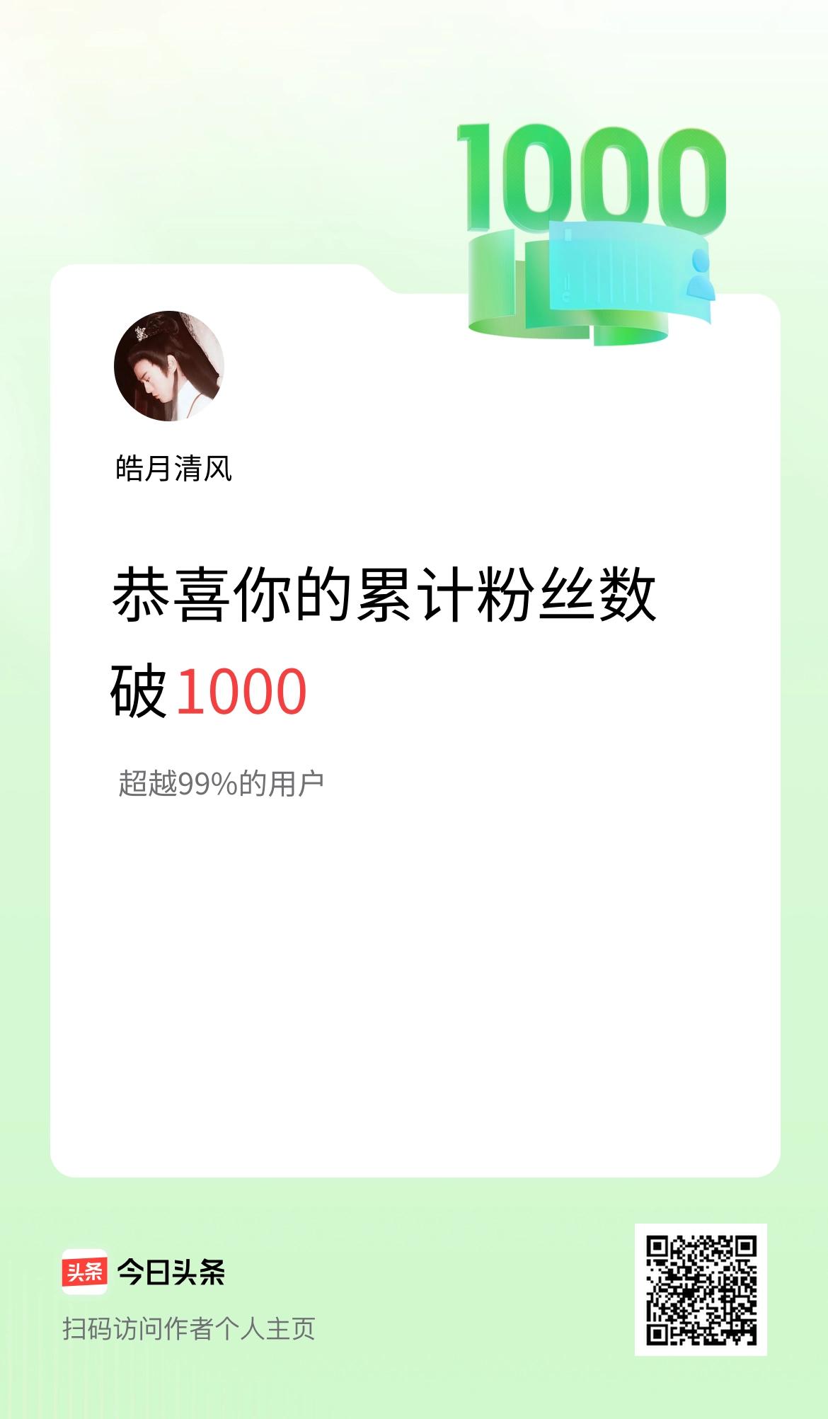 我在头条累计粉丝数破1000啦!