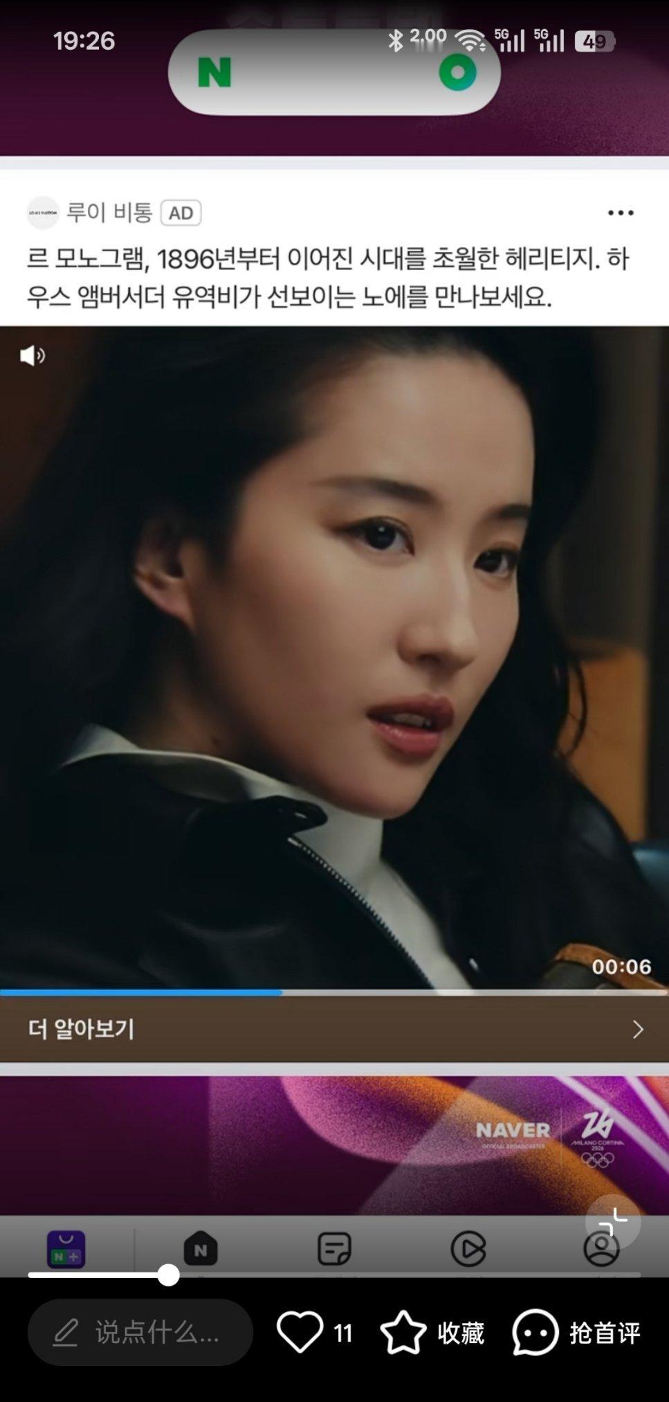 网友在韩国NAVER网站看到刘亦菲的LVMonogram130周年全球广告。