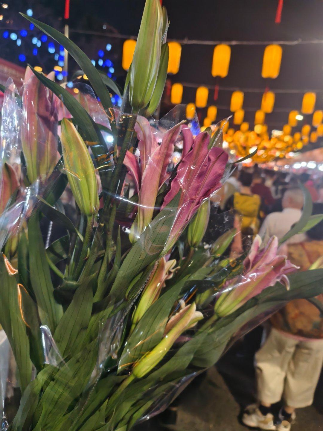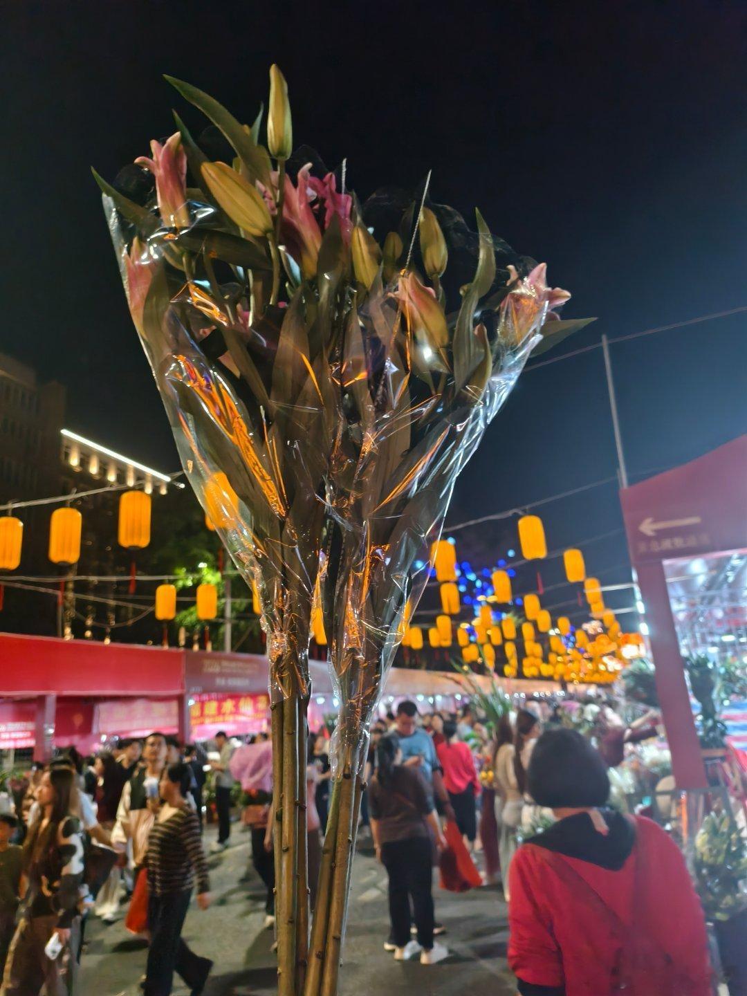 花了20块钱,买了6支香水百合,又花了10块钱,买了5支剑兰。果然吃完年夜饭,逛街爱国路花市,老深圳的传统不能丢春晚史上最长春节假期点燃消费热潮 深圳·罗湖区爱国路花市