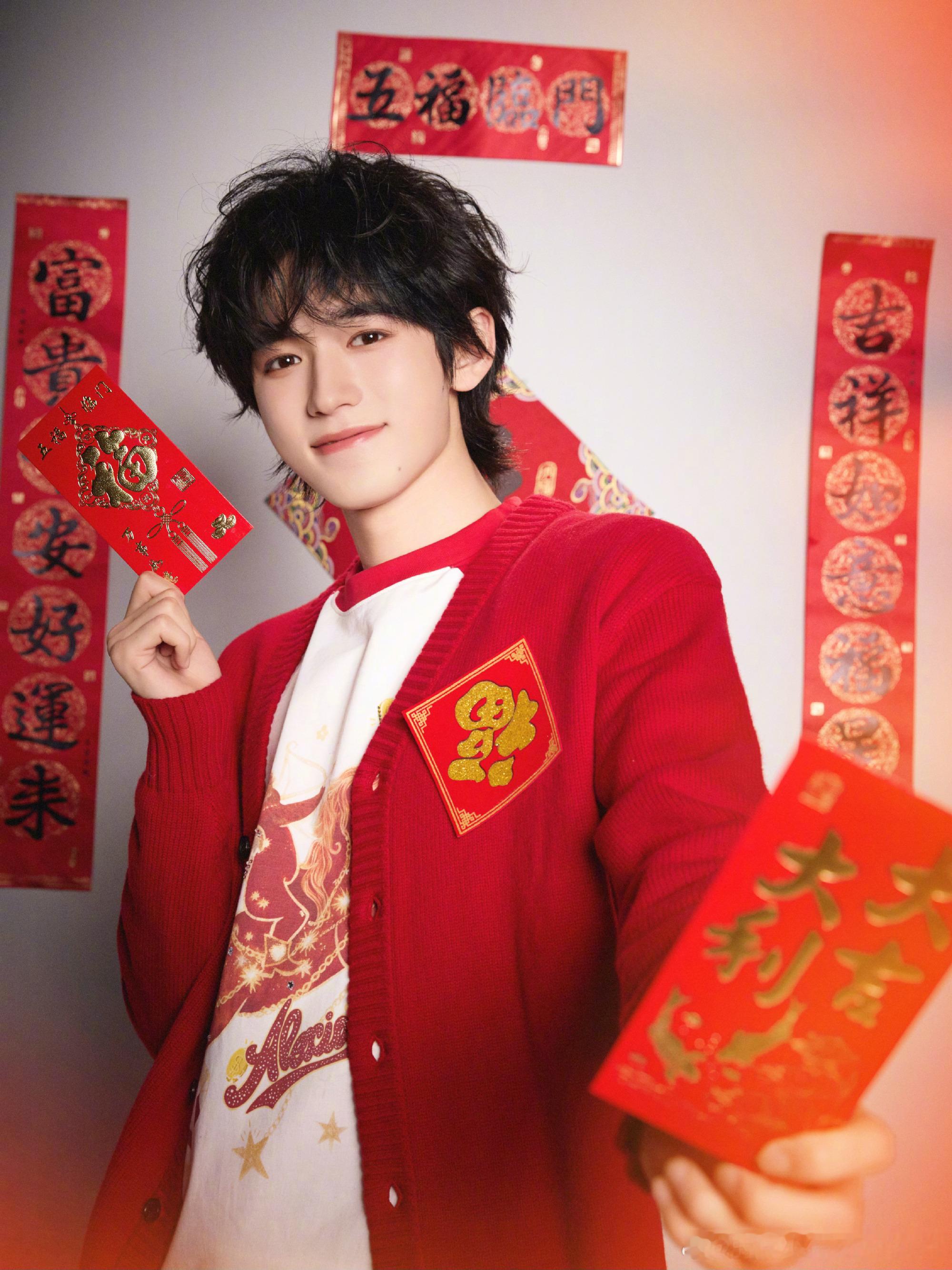 宋亚轩除夕营业照宋亚轩说红红火火过大年 辞旧迎新,福运登场。以一身喜庆红毛衣送上除夕祝福,眉眼温柔,笑意明朗,将新春的好运与暖意一并传递。来和宋亚轩一起接住新春好运,开启红火又圆满的新一年。