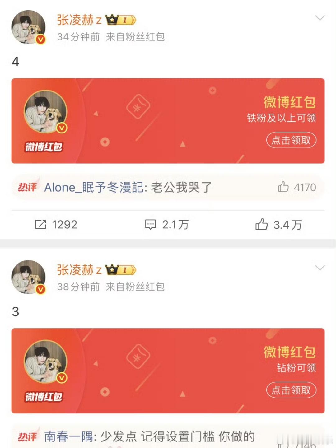 张凌赫发了好多红包刷到张凌赫红包事件才发现:这人宠粉是真有一套。 线上15万分12个红包精准投放核心粉,线下剧组探班连代拍都发了定制红包,封面还是新剧谢厉。