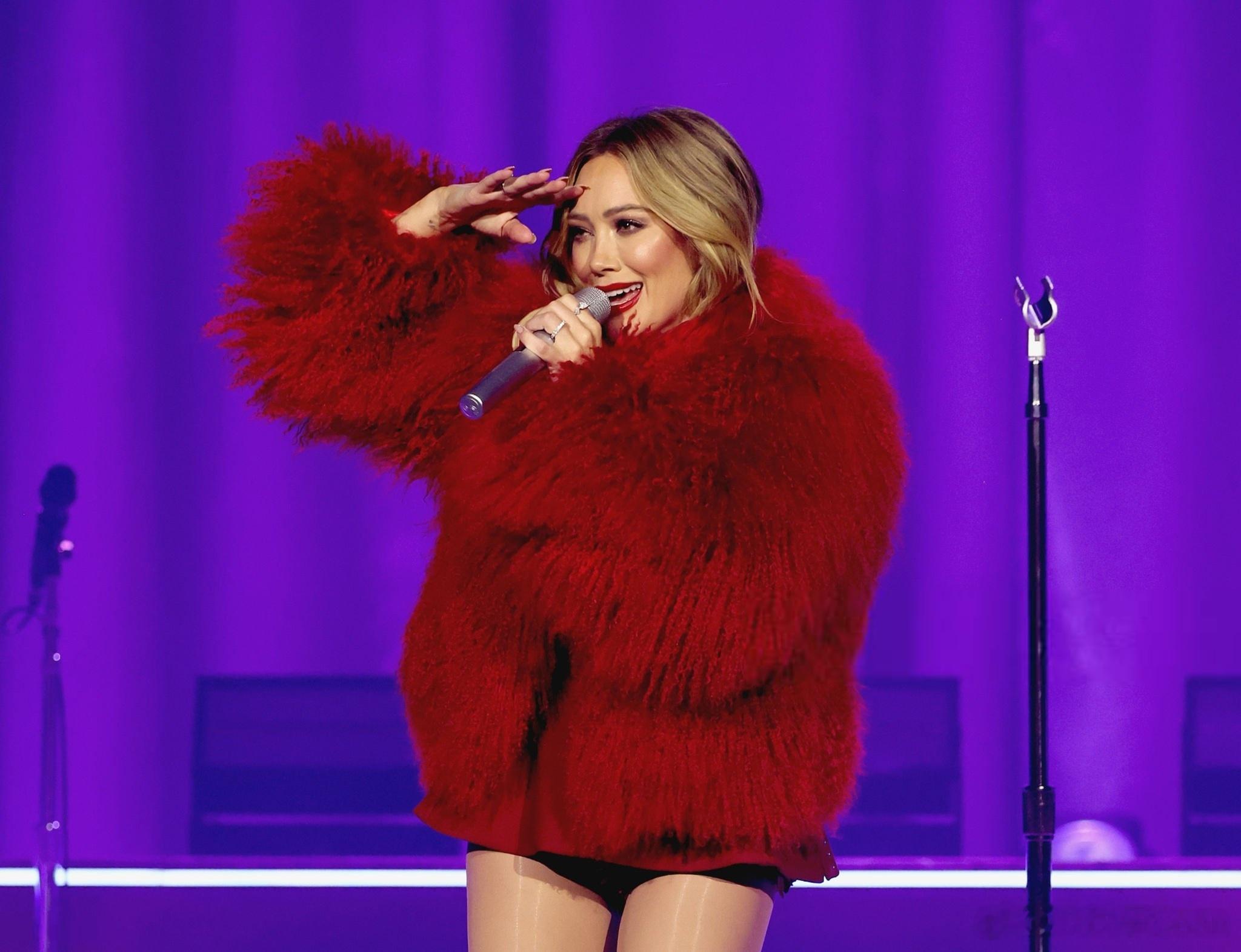 Hilary duff希拉里达芙在拉斯维加斯情人节场的演出,添加了粉粉红红紫紫的节日氛围