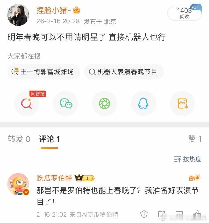 春晚段子大考春晚支持这个罗伯特对明年春晚进行语言支持👊